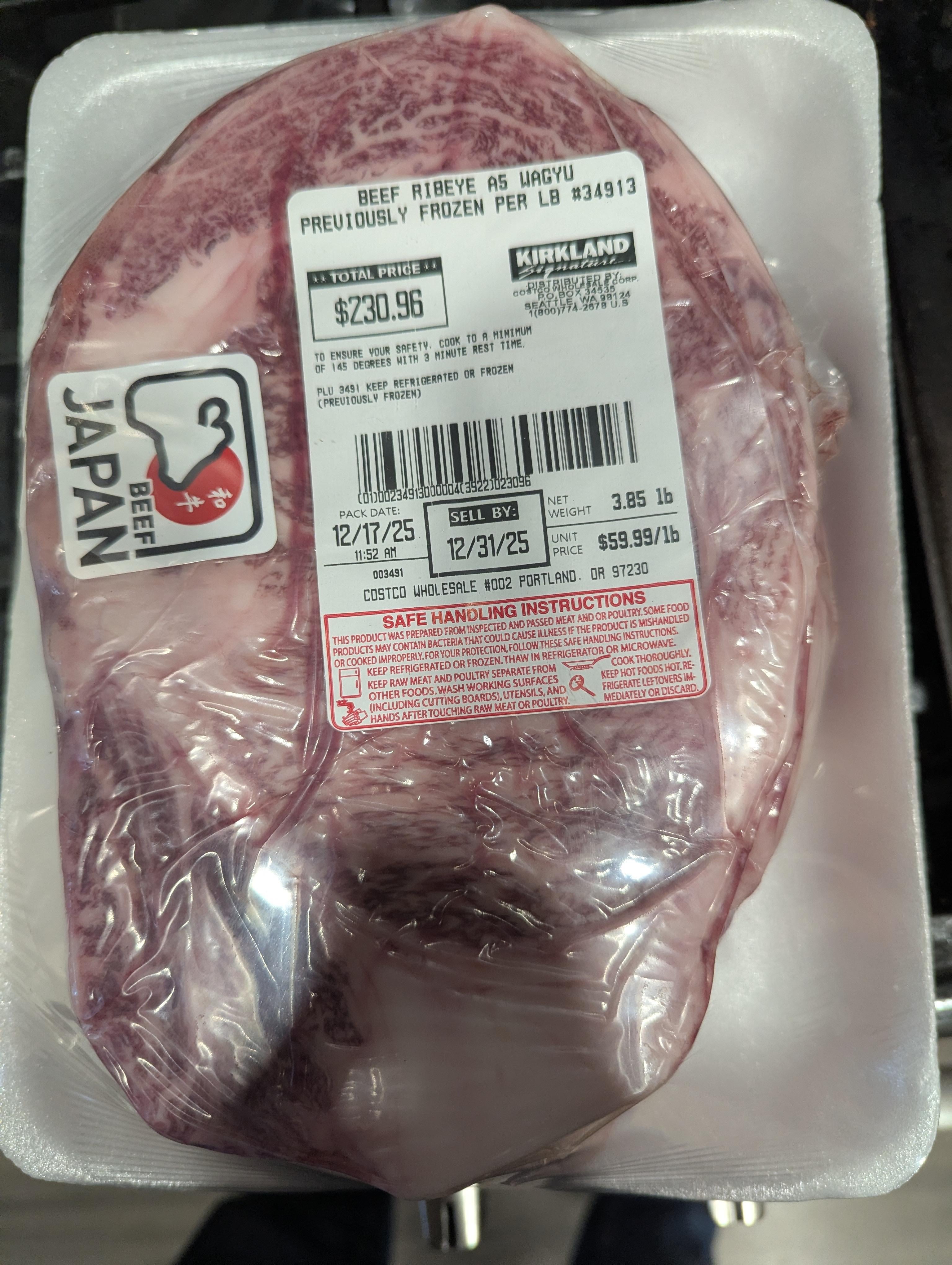i am a steak lover and have been perfecting sous vide steaks for 3 years now… my costco JUST got A5 for the first time and had these. I can’t bring myself to buy a $250 steak … no matter what. if they had 1 lb cuts i would do it but not 4lbs of A5