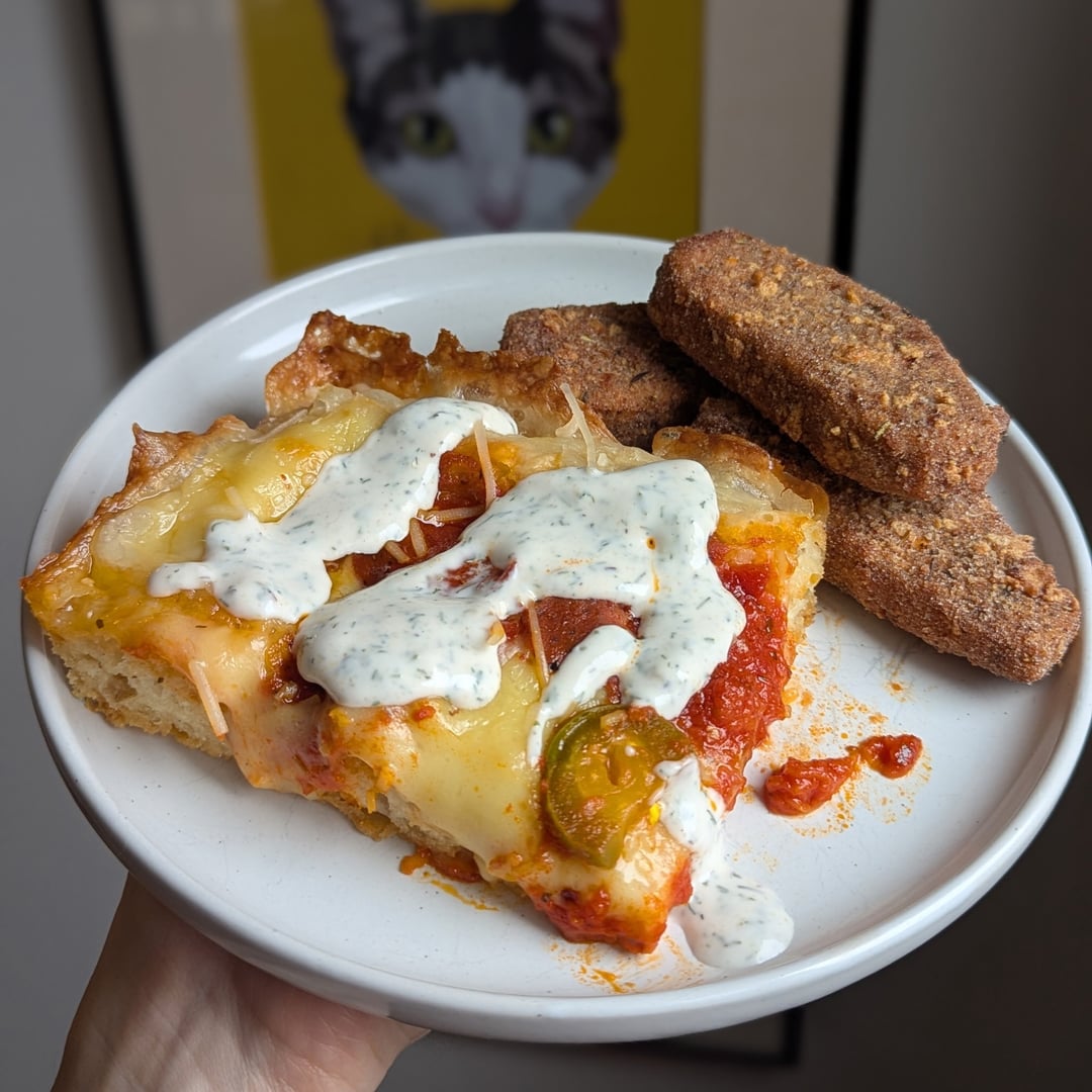 Not vegan but this looks great! Also, as someone from Detroit, 100% agree with putting ranch on pizza.