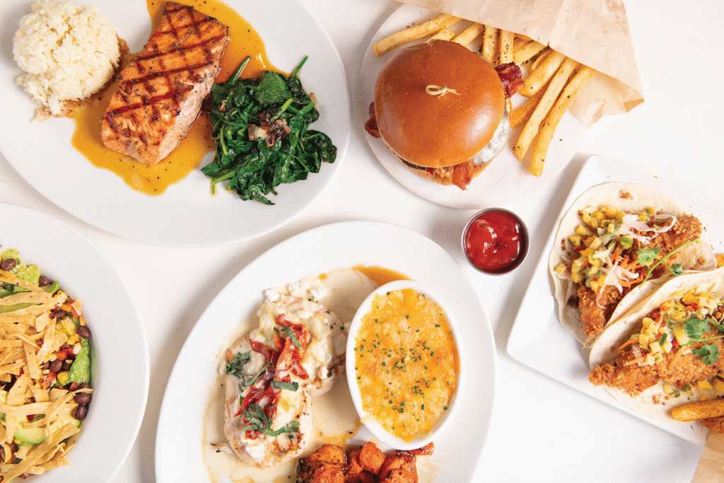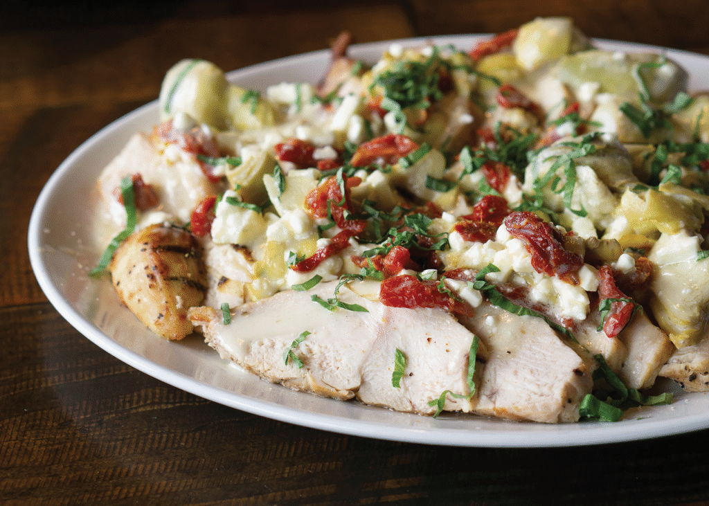 This five-unit mini-chain continues to offer a large menu (photo, right) of quality American cuisine, including always-fresh fish plus assortments of flatbreads, salads, steaks, burgers, chicken (like the lemon feta chicken, right) and pasta options that keep our readers coming back for more.