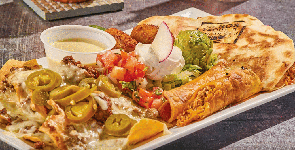 With its huge menu, it can be hard to make a decision, so why not try the Señor Tequila Sampler appetizer shown here?