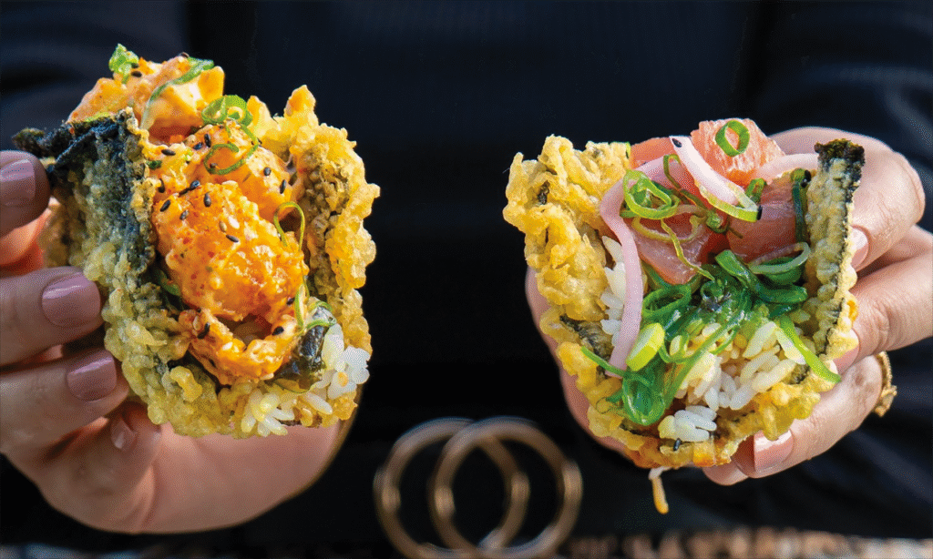Although there are a lot of Japanese and other Asian restaurants in our area, there’s a reason why Zukku-San moved back up into this year’s top-5 faves in WC — consistently fresh sushi that is served on unique art palettes and always-imaginative menu options like the sushi tacos shown here. It also has the best variety of appetizers, including all different kinds of veggie tempura.