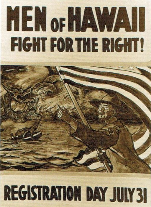 A World War I recruiting poster in 1917 urged Hawaiʻi residents to help in the war effort. (Wikimedia Commons)