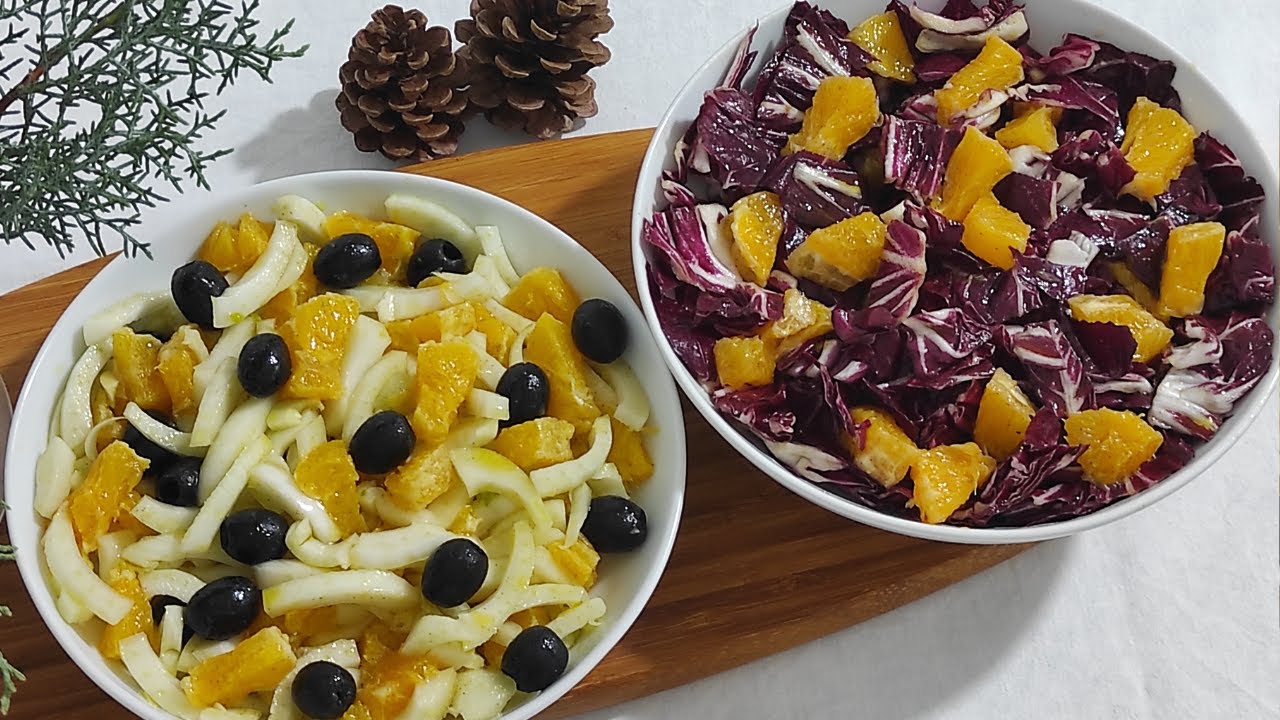 Hello, friends. Welcome to my channel. Today we’ll prepare two types of unusual Italian salads. Interesting combinations and bright colors will help you decorate even a festive table. And it’s especially suitable for those who don’t like mayonnaise salads. And most importantly, it’s quick, tasty, beautiful and healthy. For the first salad, we’ll need this bright lettuce called Radichio. It comes in colors ranging from burgundy to purple. Just don’t confuse it with purple cabbage. I wash the lettuce, cut it into pieces and put it in a salad bowl. Next, we’ll need an orange. I cut the orange into large cubes. It looks much prettier this way. And put it in a salad bowl. And now all that’s left is to dress it. First, I add salt. Then I add ground black pepper and olive oil. Mix everything well, and our salad is ready. I recommend dressing the salad before serving so it stays fresh and crisp. For the second salad, we’ll need fennel. I’ve already peeled it, removing any hard parts. We’ll be using an orange in this salad . I wash the fennel and cut it into medium-sized pieces and add it to the salad bowl. I also cut the orange into large cubes and add it to the salad bowl. Then I add the black olives. I add the olives whole; it makes the salad look much prettier. All that’s left to do is season it. First, I add salt. Then I add ground black pepper and olive oil. And mix everything thoroughly. These salads usually don’t have vinegar or lemon juice. So, these are the interesting, delicious, and vibrant salads we’ve prepared today. And most importantly, they’re simple, quick, and healthy. If you’re a fan of different salads like me, subscribe. I’ll definitely be sharing different recipes on the channel. And in the description under the video, I’ll leave links to interesting salads that are already on the channel. So, stop by and let me know in the comments which recipes you’re most interested in. We’ll see you in the next video. See you soon.