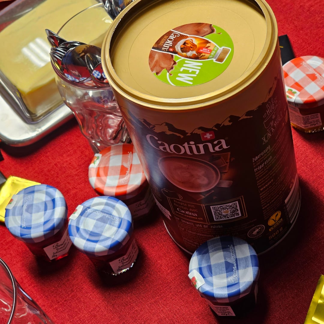 Buttergipfeli are Swiss croissants, Weggli are widely popular bread rools, Bündnerfleisch is air-dried beef meat produced in the Grisons. And Ovomaltine, Caotina and Napolitains all relate to chocolate.