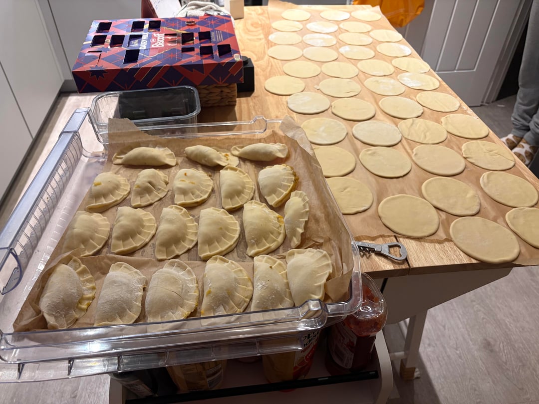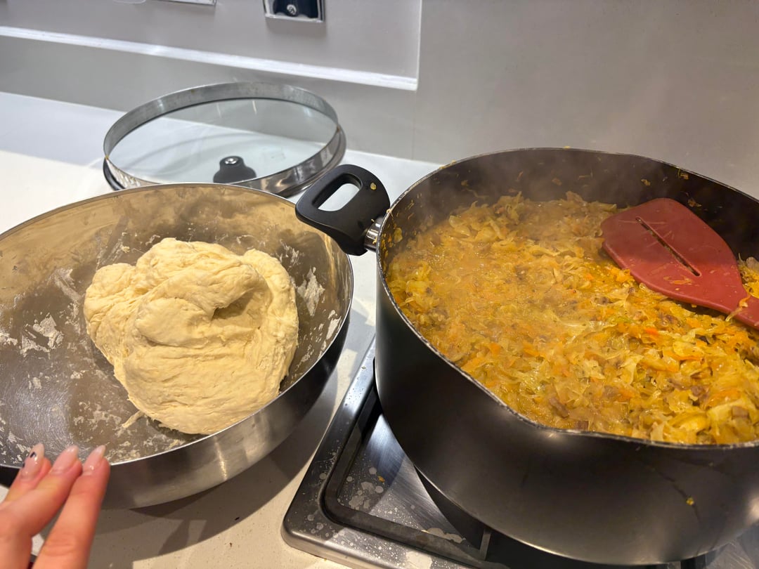 * polish pierogi (hubby uses grandma’s recipe but you can google the recipies) (flour, water, salt, sauerkraut, mushrooms) because christmas is coming we made like 200🤣🫢