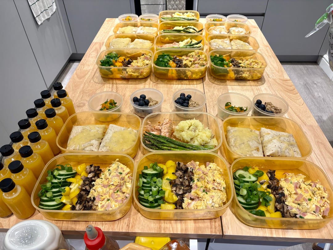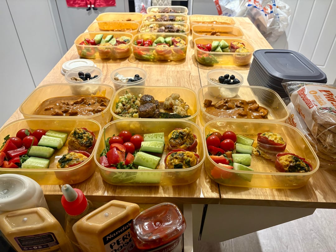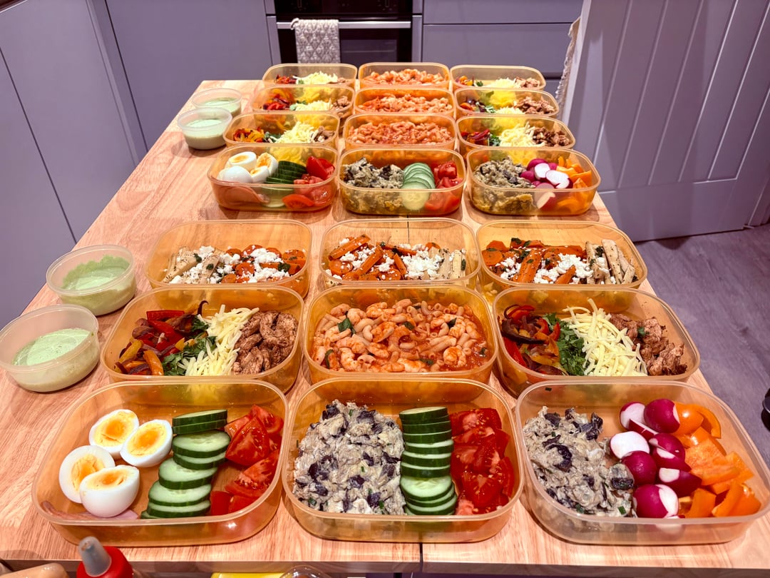 i cook twice a week: sunday for mon-wed and wednesday for thurs-sat. first 2-3 boxes are mine and 4 for hubby.