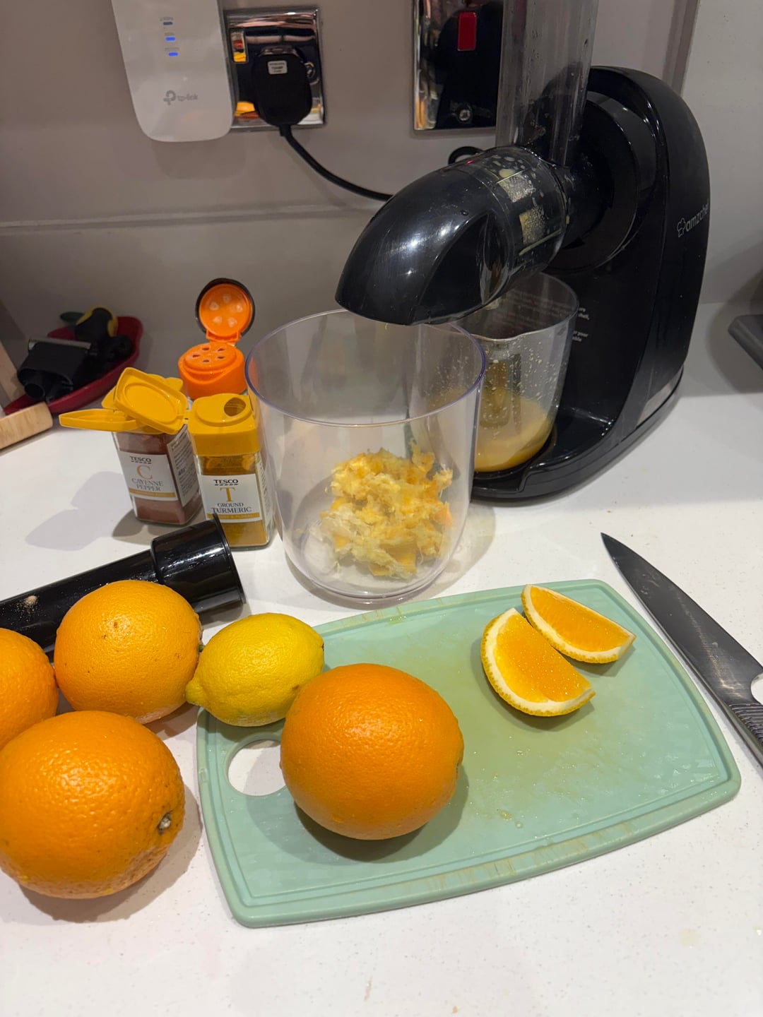 * fajita wraps (chicken, spices, cheddar, peppers, onions, corriander and wraps) wigh corriander sauce (corriander, spices, yoghurt, lime)
