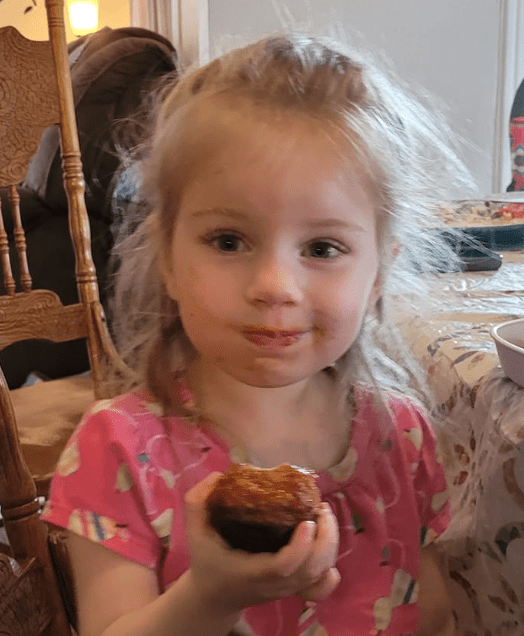 Rob and Lynn’s granddaughter enjoys a Robsagna meatball. (Provided by Rob McKee)