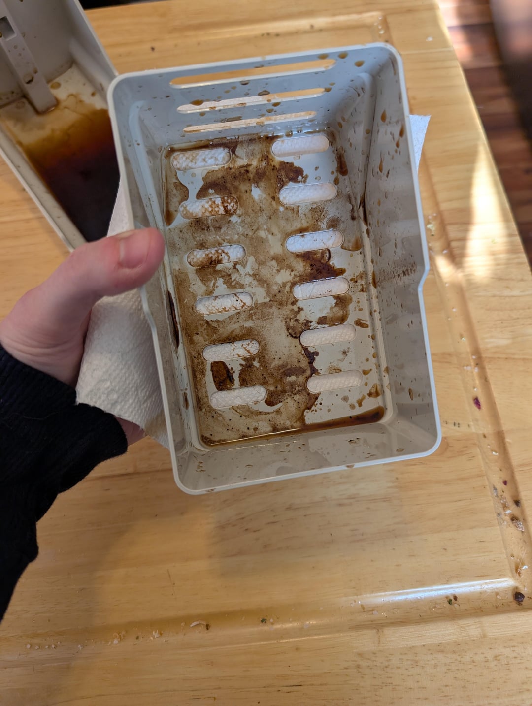Overall, if you're looking to upgrade, I'd really weigh the benefits against the cleaning inconvenience. I drink at least two pods a day, so it fills up quickly. It's a little better if I fold up some paper towels in there to soak up the liquid, but still not ideal.