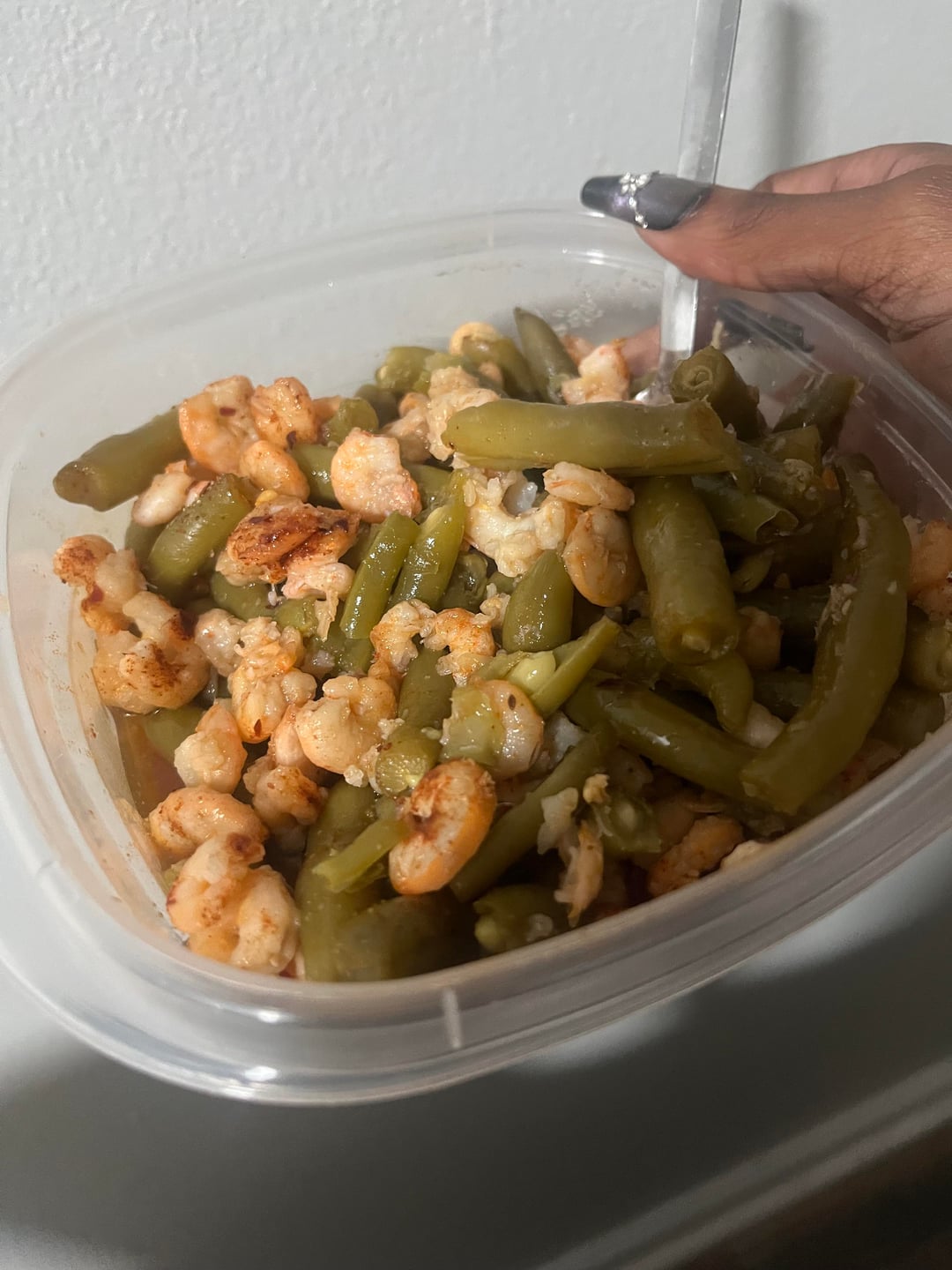 Tiny shrimp and green beans added soy sauce and honey and seasoning ofc. 225 cal ,23 G proteinby Maleficent_Cost8926 Dining and Cooking