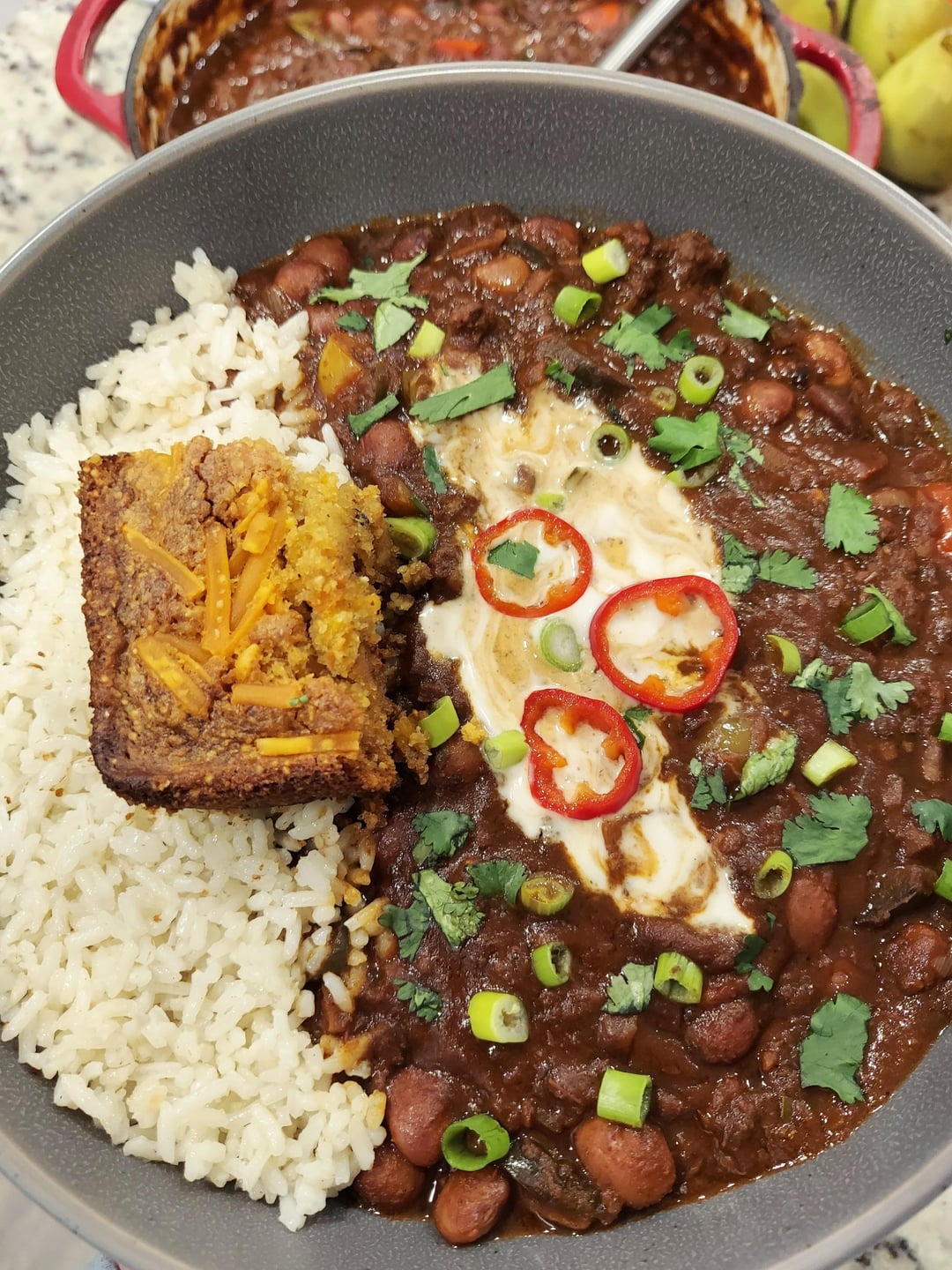 Chili made with Rancho Gordo Stallard and pinto beans, Impossible spicy sausage, and a whole lot of spices and peppersby slh2c 11 Comments WildVeganFlower 4 weeks ago Do you have a favorite chili recipe? I have only made it a few times and want to try making it again SleezMachine 4 weeks ago That’s a comforting meal RedHot_JillyPeppers 4 weeks ago Holy smokes! Looks delicious!!! B14ckP4nth3r 4 weeks ago Looks so good! Fuzzy_Welcome8348 4 weeks ago Looks spectacular! ShitHammersGroom 4 weeks ago Looks like dog food, to each their own I guess Dontfeedthebears 4 weeks ago I’d love to have this. I’m sick and too exhausted to cook. This looks perfect. eggsaid 4 weeks ago Looks so good, I’m going to make chili this week. Can you please share the cornbread recipe? Exit-Alternative 4 weeks ago Yum! Revan_Mercier 4 weeks ago Looks fantastic, I’ve got a lot of rancho gordo beans to use up this winter. What cheddar did you use in the cornbread? TPandPT 4 weeks ago This looks really good. I was trying to figure out why you circled those spots with red for way too long