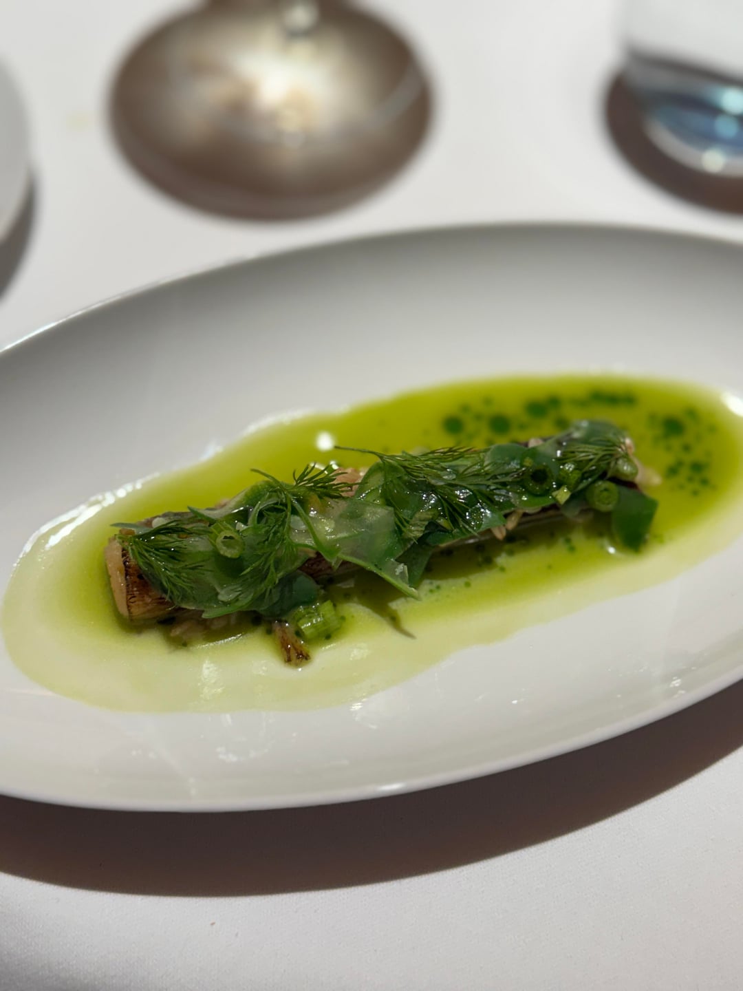 If I had to pick a favorite course. This would be it. The radish cream under the fish was superb on its own.Leek | Oat | Scentless Chamomile | Dill
