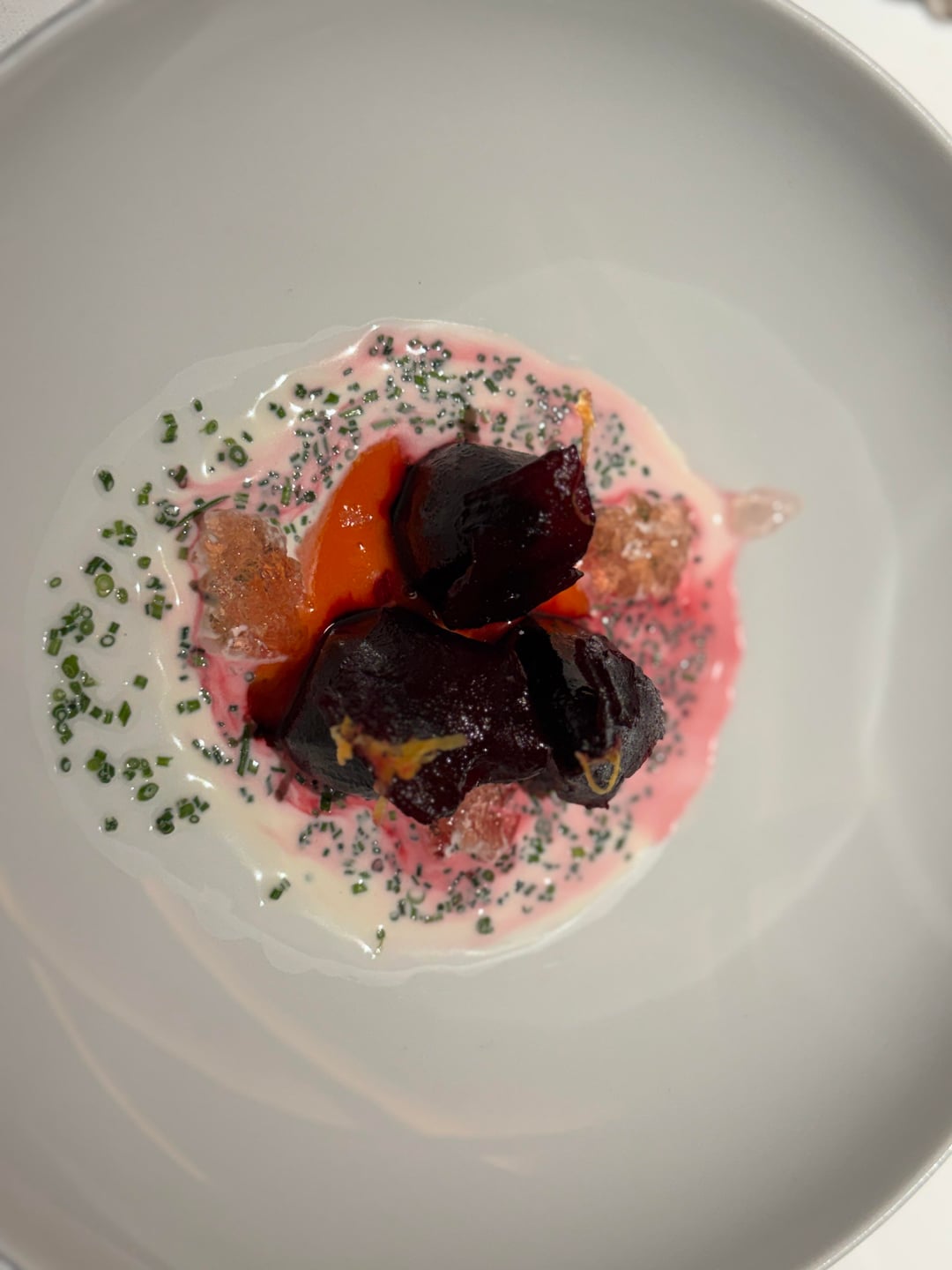 This was also a great course. The lemon gave it a bit of more freshness.Beetroot | Bell Pepper | Rose Vinegar Jelly | Chive Cream | Grapefruit
