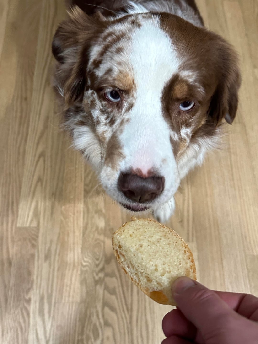 Lol the dog looks skeptical this time, almost like they’re suspicious of the treat