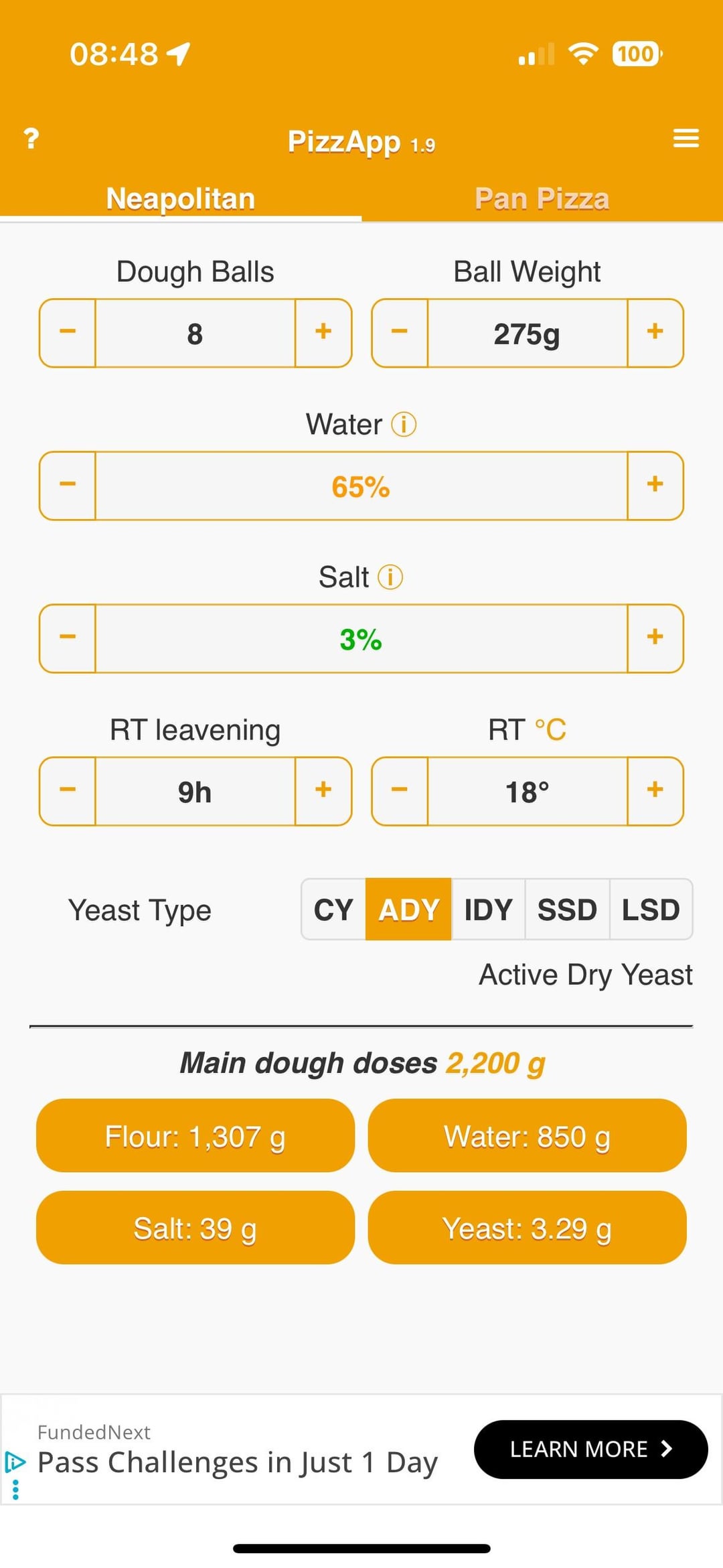 Dough was a straight forward direct prove, room temp all day for bulk ferment, and then balled about 3 hours before needed.