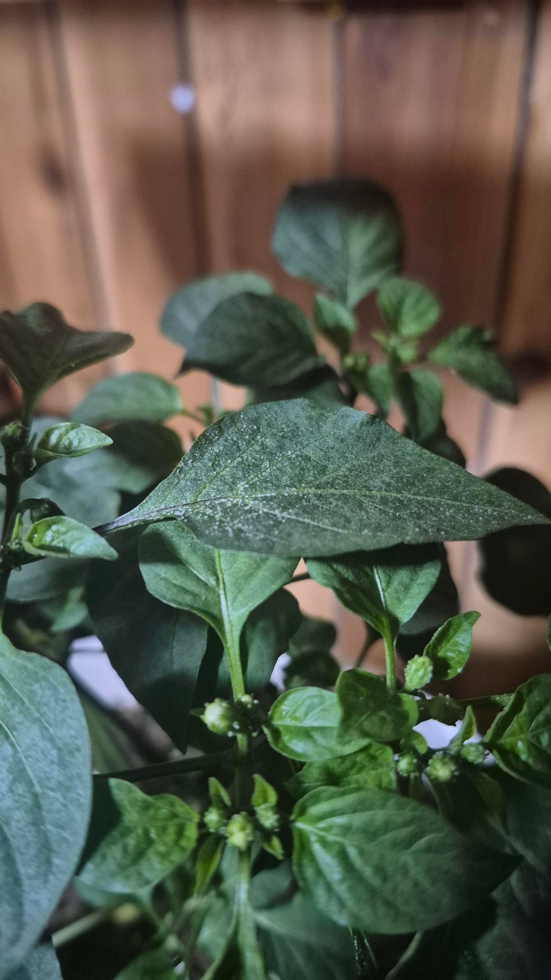 Does anyone know what this could be on my cayenne pepper plant? I recently moved it to a bigger pot 3ish weeks ago. Its been growing steadily, I've been watering deeply once a week, and the temperature in the room is about 70 degrees consistently. On occasion I also using this mosquito bits to prevent fungal gnats and other pests.