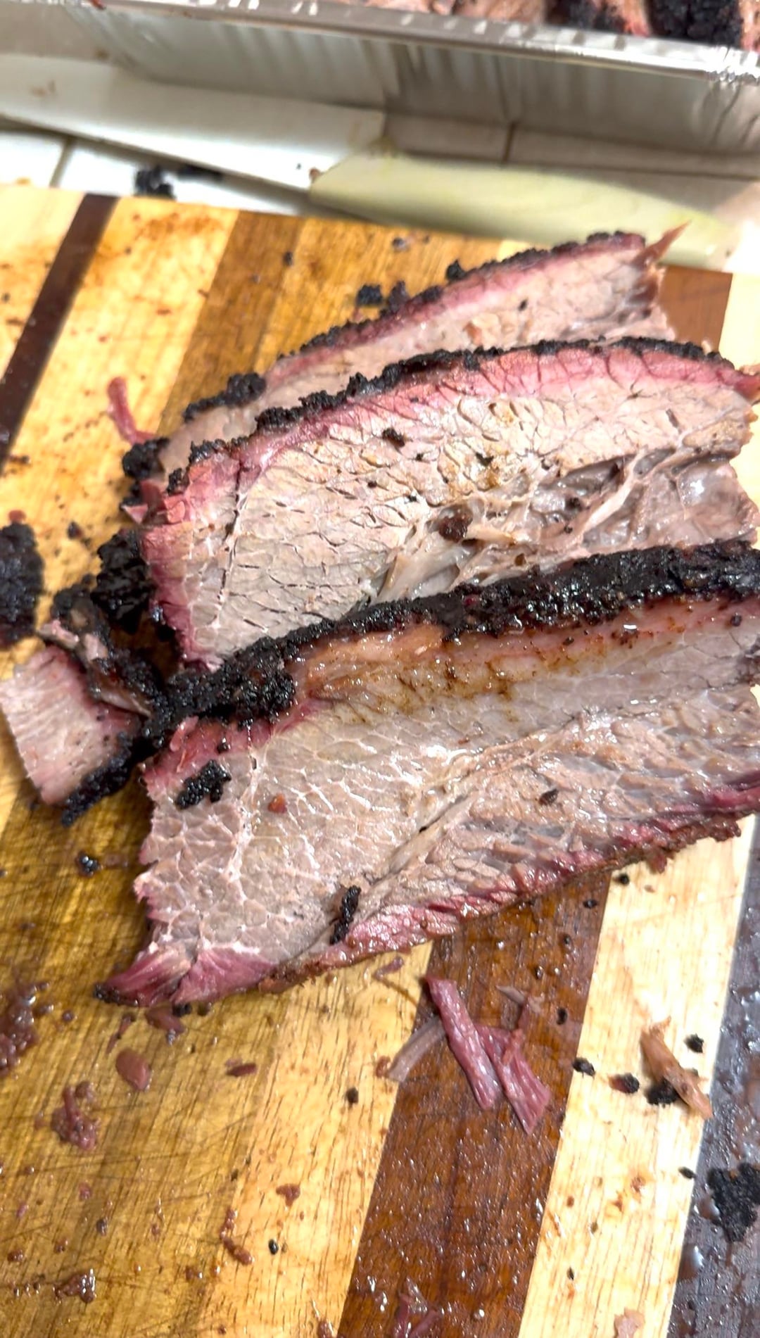 Did a 14lb brisket on thanksgiving. I trimmed the Mohawk and deckle fat, Cooked it at 230-260 for 14 hours, using the snake method. I wrapped it at around 170 using the foil boat method and let it cook till what felt like probe tender to me at 204. Once I took it out the grill, I added tallow and wrapped it in butcher paper. I let it rest in the oven while off for an hour till I sliced it. Overall, the flavor was great and the bark was good too. The only thing is, it was just a tad dry for my liking.
