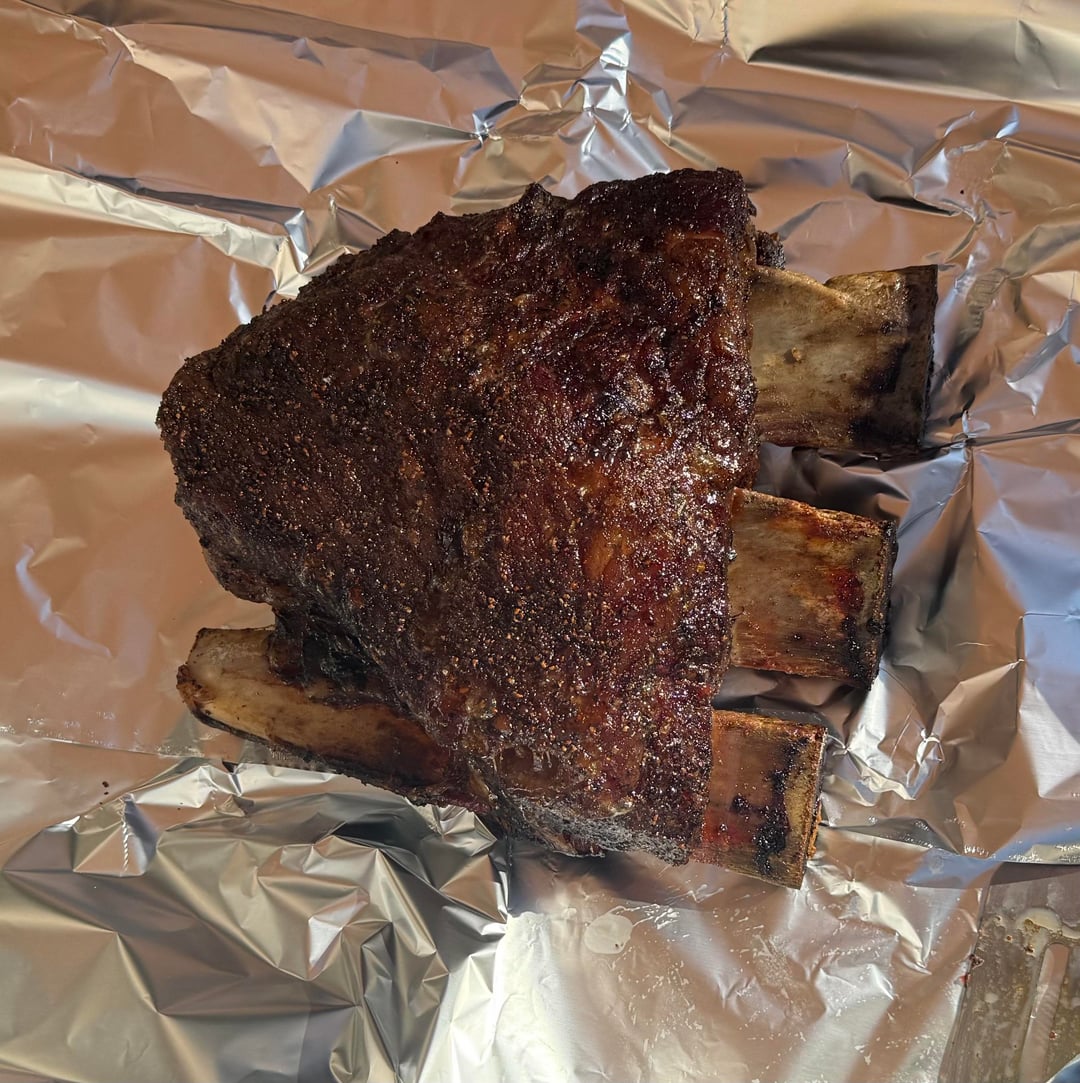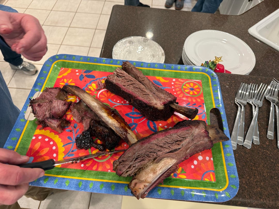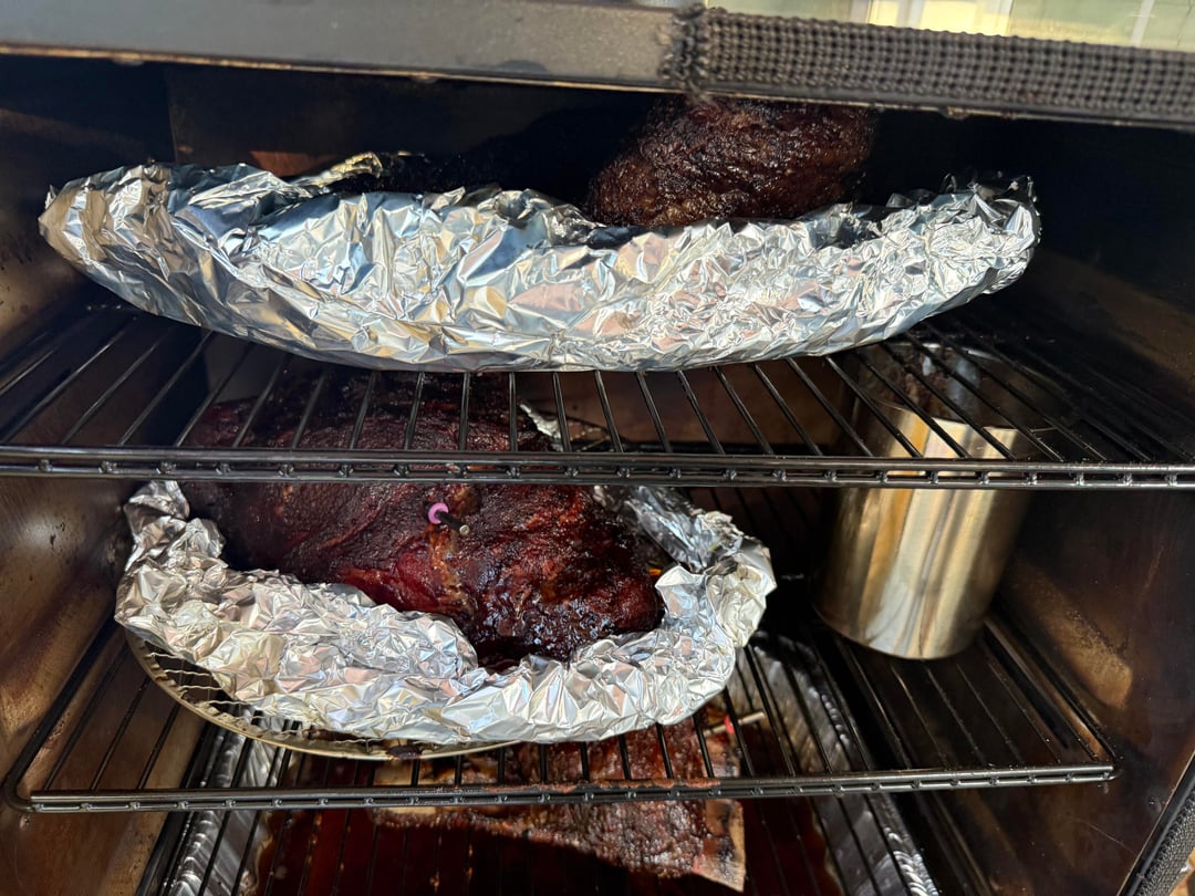 Had a brisket and a butt too. Cook was 10-ish hours @225 but I was worried about time so bumped it to 280 the last hour. Best one yet- had it under the butt and brisket in my pit boss vertical smoker so there was a bit of drippage until I boated those two.