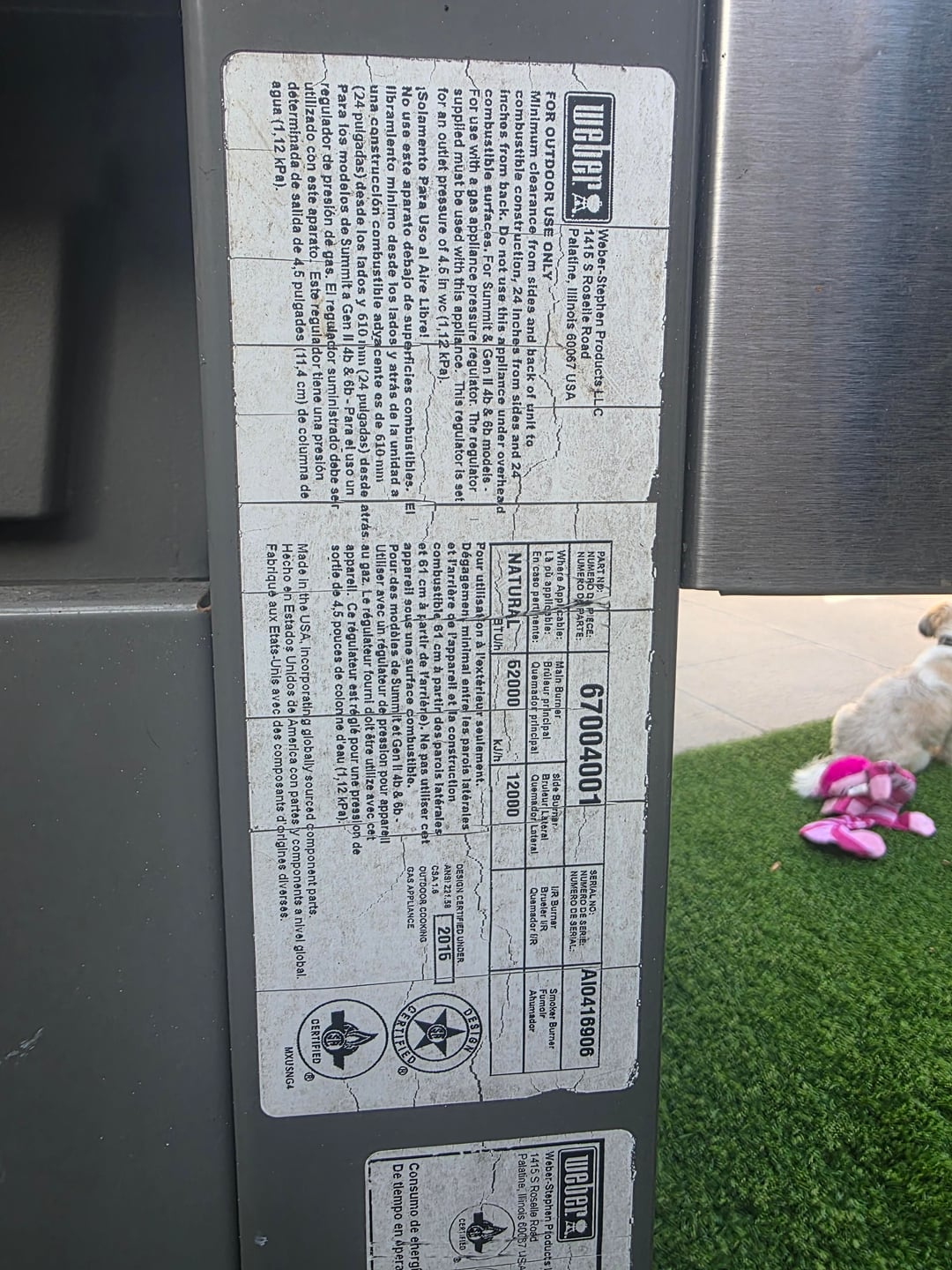 I’ve already replaced the natural gas supply hose and the regulator. At first, I thought it might have been a propane grill converted to natural gas and that the orifices weren’t changed. However, after checking the serial number, it appears to be factory natural gas.