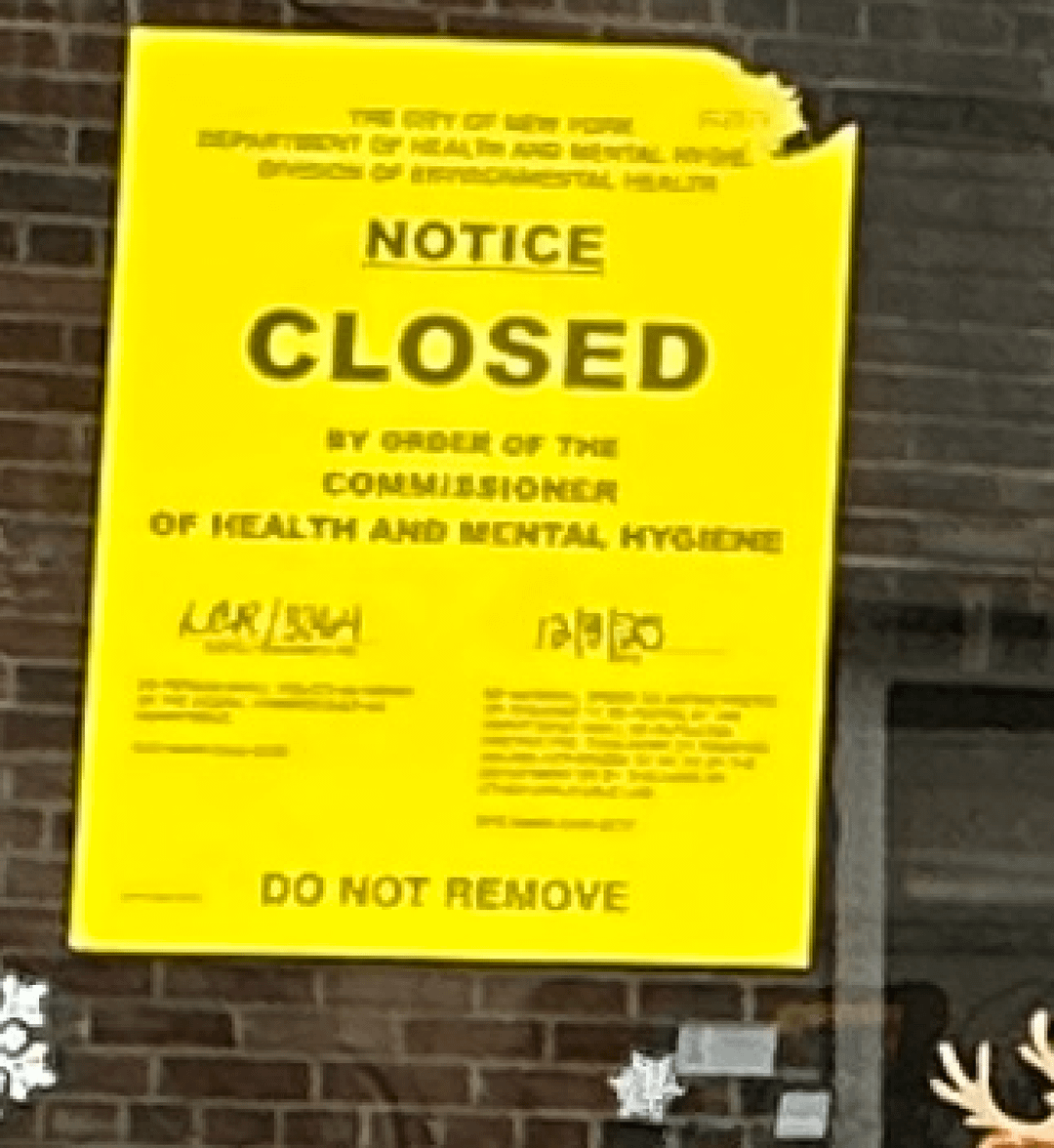 Closed by Order of the Commissioner of Health and Mental Hygiene.