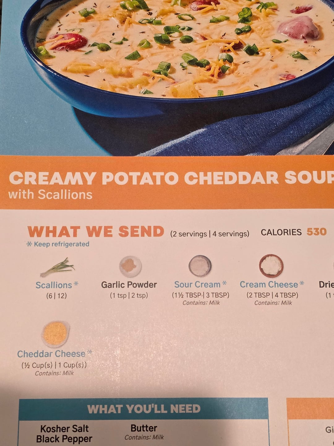 Hello Fresh’s Loaded Baked Potato soup uses a lot of scallions as well. It’s totally worth it. Really good. It may seem like a lot, but it’s good.