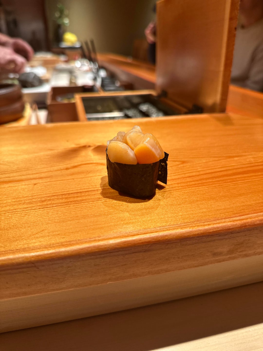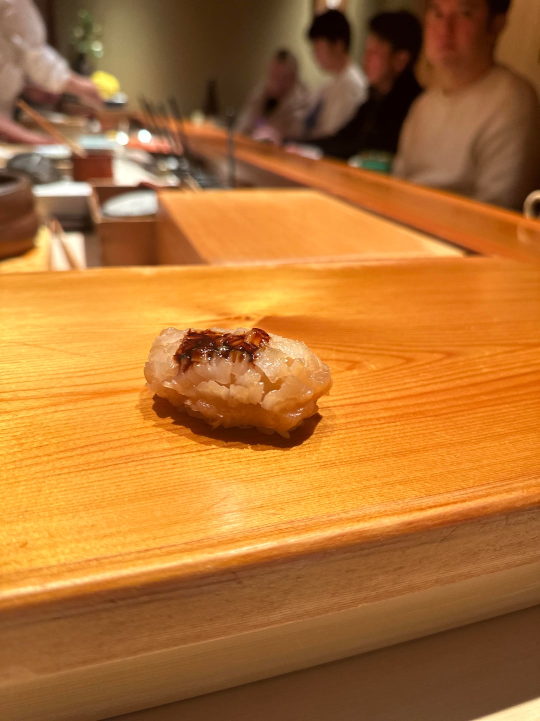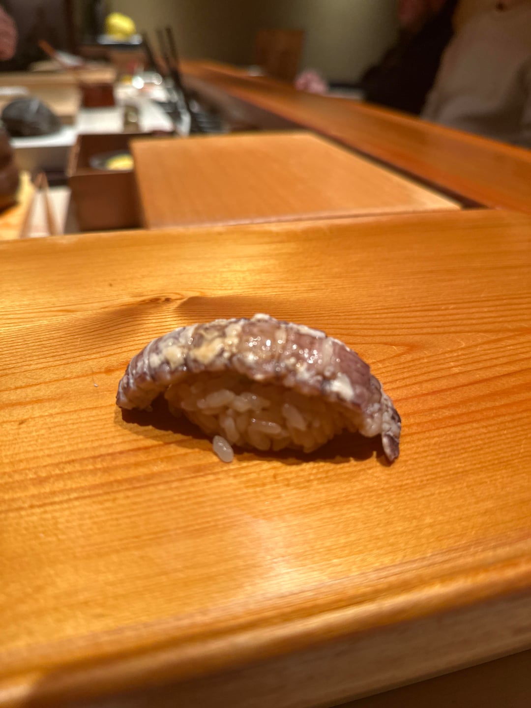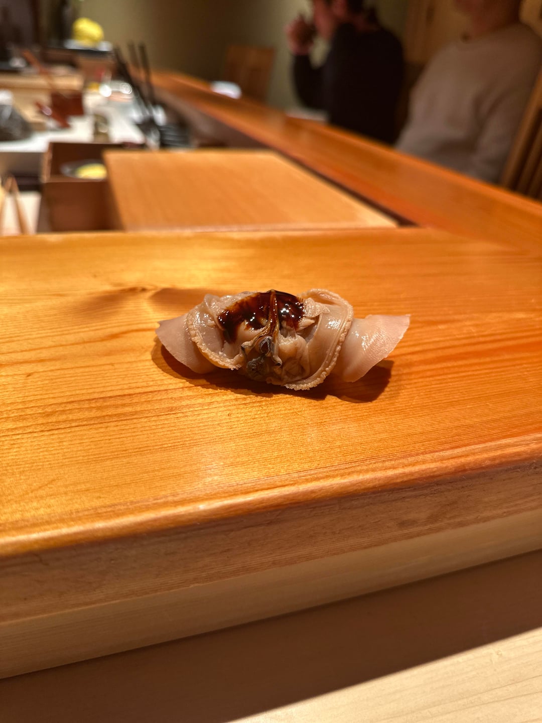 Courses were: Aburi Sawara and sayori Shirako suimono with broth of kaki, yuzu and sake Yari ika ikameshi with rice and kanpyo – it was called something else, I just don’t remember what the dishes specific name was n it looked like ikameshi so that’s the wording I’m using lol Buri cooked warayaki then zuke’d. Topped w daikon oroshi and menegi Chinmi plate – kaki, savoury; ankimo and gejang style shima ebi Hirame Tennen buri (same as above), very good – could honestly used a touch more wasabi Akami zuke Chutoro Kohada Ni hotate Shiro miso soup Shima ebi Bafun uni Ni anago Castella tamago Extras Sayori as nigiri Aoyagi Aoyagi kobashira Shako Ni hotate Kuruma ebi with ebi miso Aburi Tako w tsume
