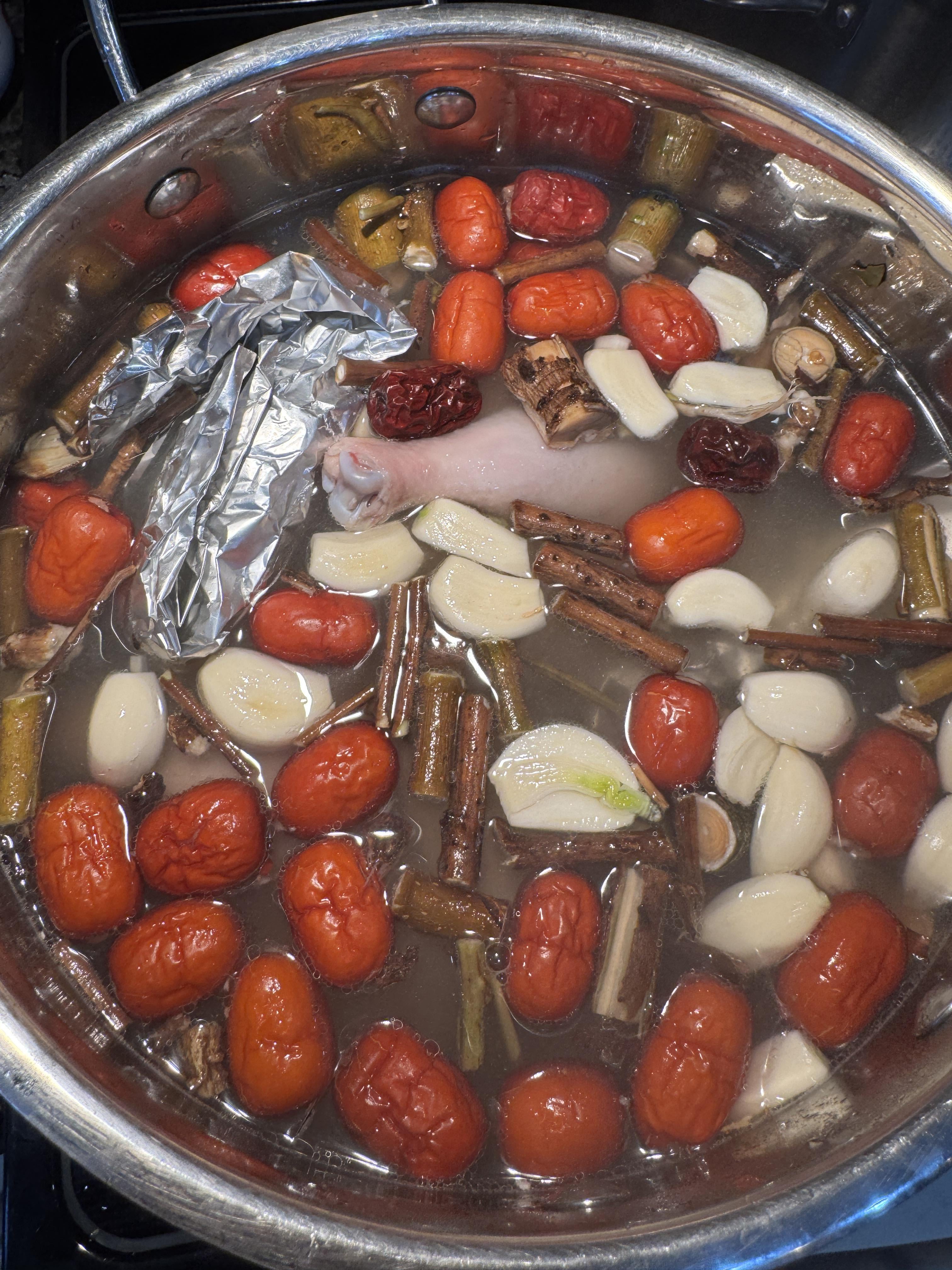 I know it's supposed to be a summer soup but I found some Cornish hen on sale – and I just have to make it.by fanofam 7 Comments Mysterious-Box-9081 1 month ago Whats in the foil? koralex90 1 month ago Please don’t boil foil.. It has lots of bad things in it. Careful_Clock_7168 1 month ago Great idea, yummy. Stay warm stkim1 1 month ago Looks good to me 🫣🤤🤠o0-o0- 1 month ago IMHO, that’s way too much ginseng and jujubes. alphamale_011 1 month ago are those cinamon barks? potatox2 1 month ago Nice and hearty in the cold weather! Sounds amazing!