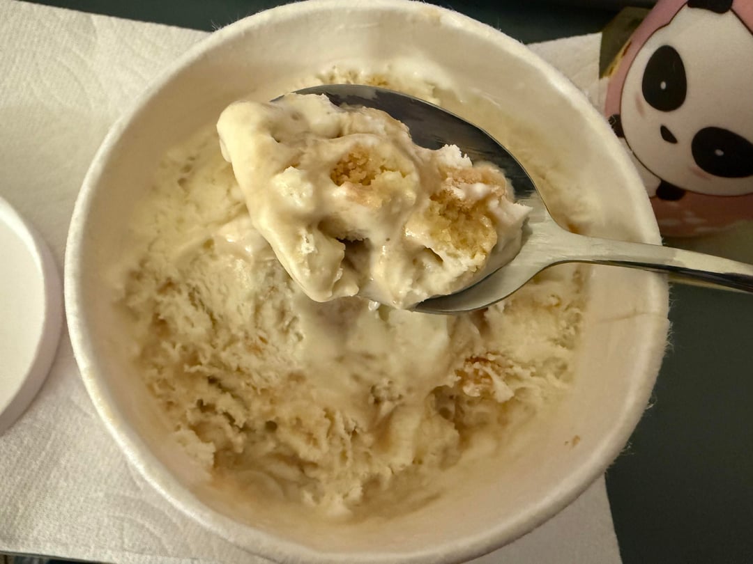 I’ve been hearing a lot of hype about this pint and this brand. I don’t know if it’s lifechanging, but I like it. The cream cheese base isn’t overwhelmingly tangy, but there’s still a bit of tang. There’s plenty of caramel and cake bits, with the cake bits having a cornbread-like texture that I liked. The flavor I got the most was a pleasant sweetness. I spent $8.99 on this and I’m still undecided if I would get it on a regular basis, so clearly I’ll need to conduct a second tasting 😋