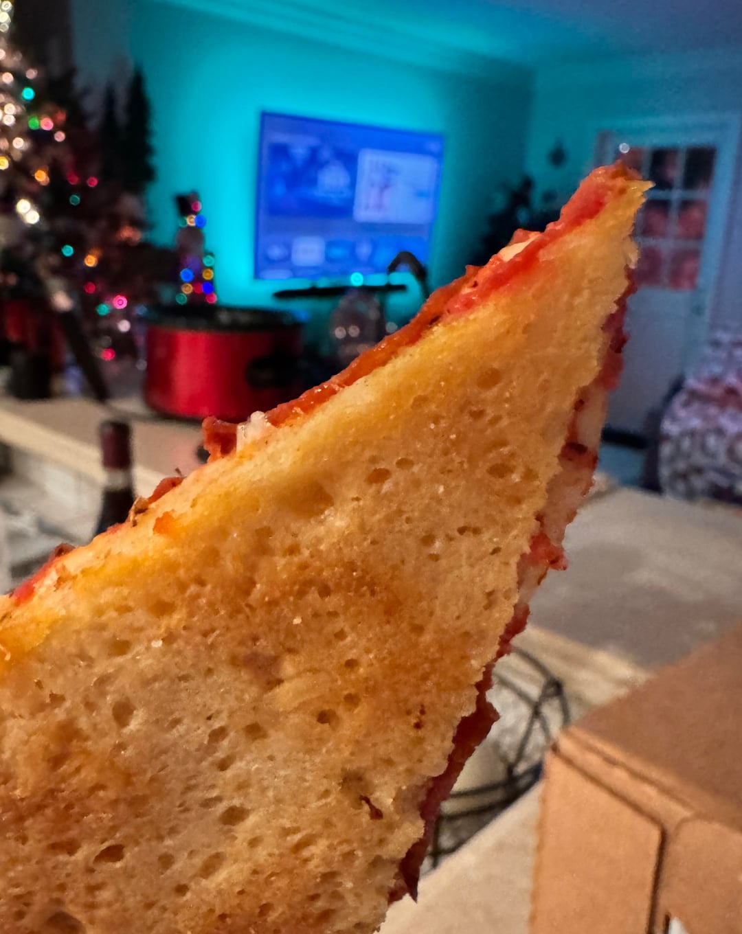 Turns out the key is Lou Malnati’s over proofs their dough AND there’s no sugar or salt. Sounds weird but I stumbled on a forum post (will link for anyone interested) with the basic theory that instead of eating added sugar, the yeast eats the carbs in the flour. With a low enough percentage of yeast, you can let the dough ferment for 24+ hours. I imagine the lack of salt keeps it from accentuating any sour flavors. By the time I pressed this into the pan it smelled like a really good beer. The crust is crispy and crunchy and the flavor is 99% there.