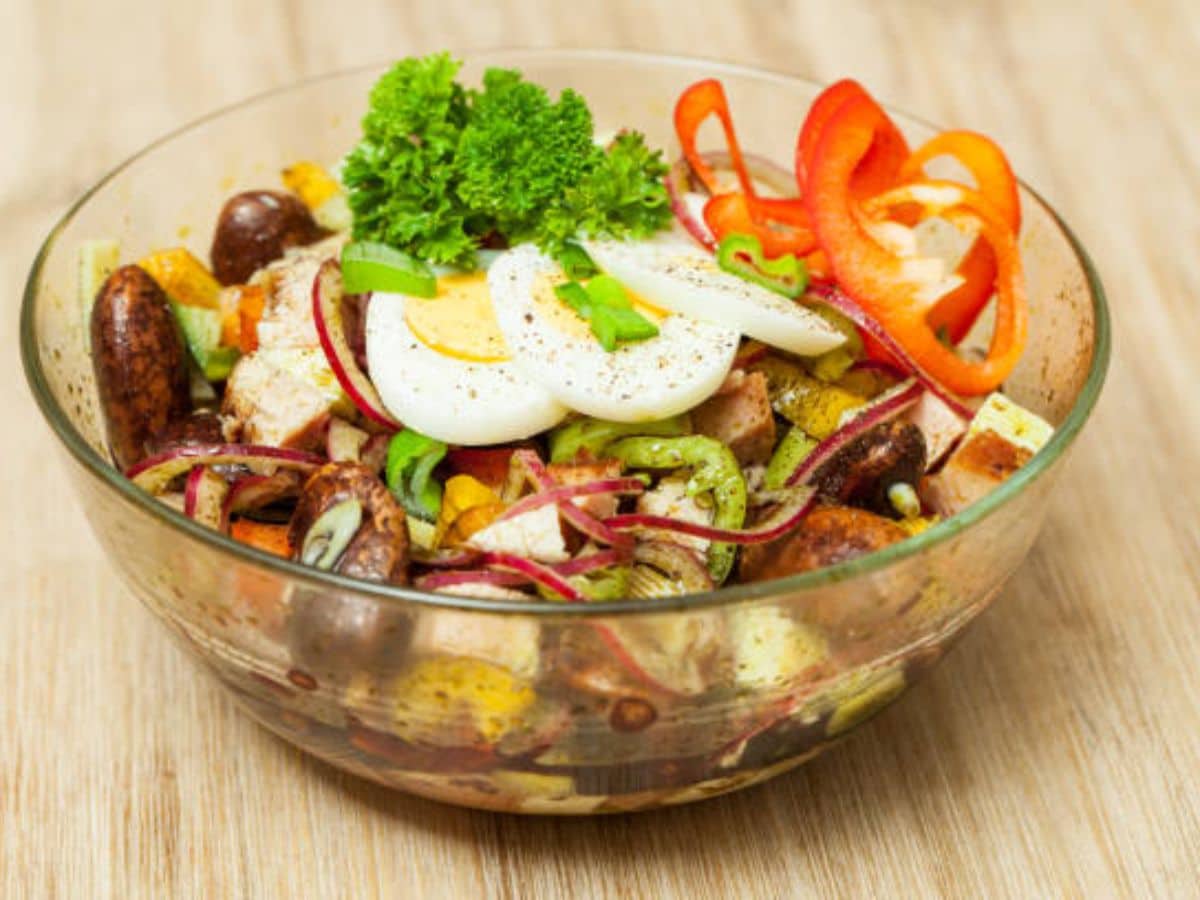 Cold meat salads became popular in post-Christmas meals as lighter alternatives to reheated roasts. Beans add fibre and protein, balancing leftover ham. This bowl suits days when a fresh, quick meal feels better after rich holiday foods.