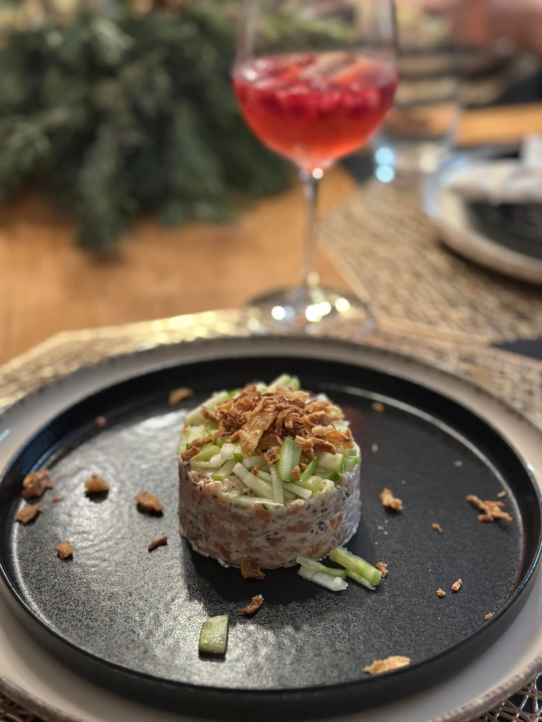 Christmas Dinner: Salmon Tatar and Filet Mignon with Yorkshire Puddings
