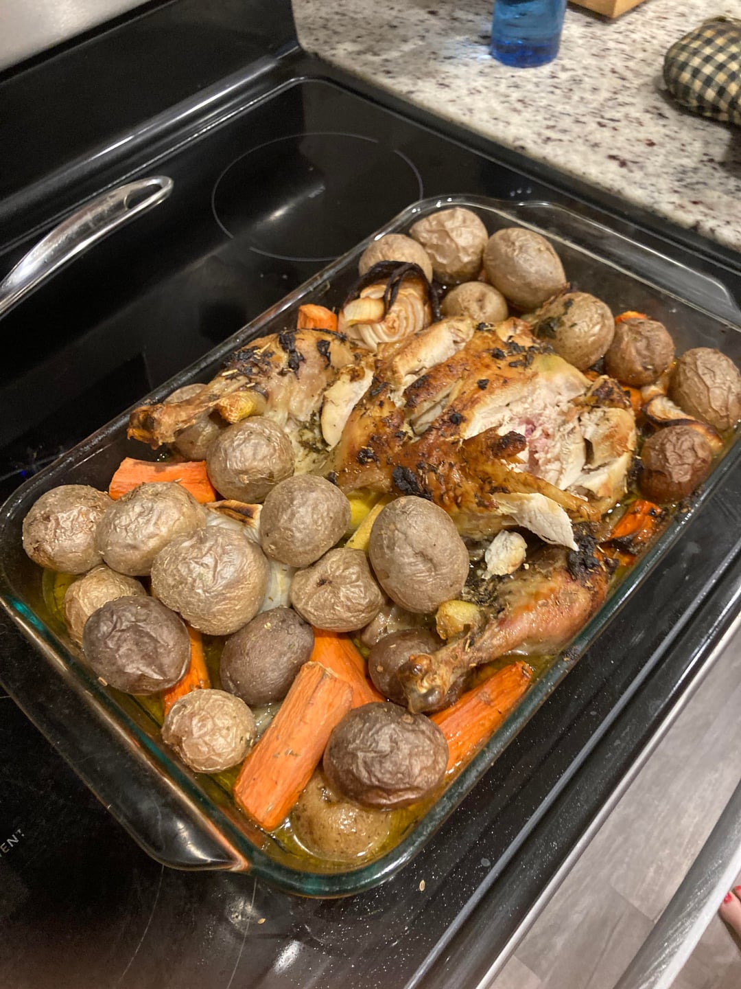 garlic butter herb roasted chicken with potatoes carrots onions garlic asparagus and rice!! and one garganuat slice of pie π₯§!! canβt wait for tomorrow merry Christmas