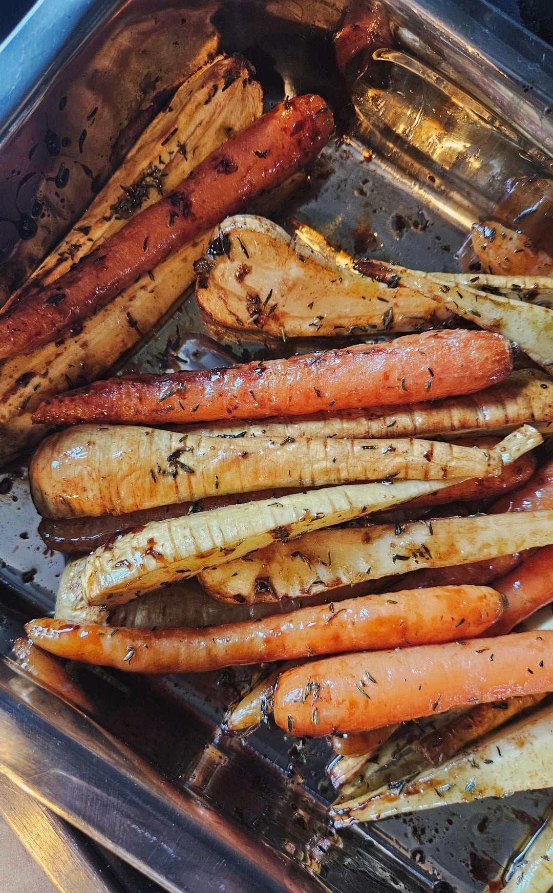 Roasted Carrots and Parsnips with Balsamic and Vegan Honey.