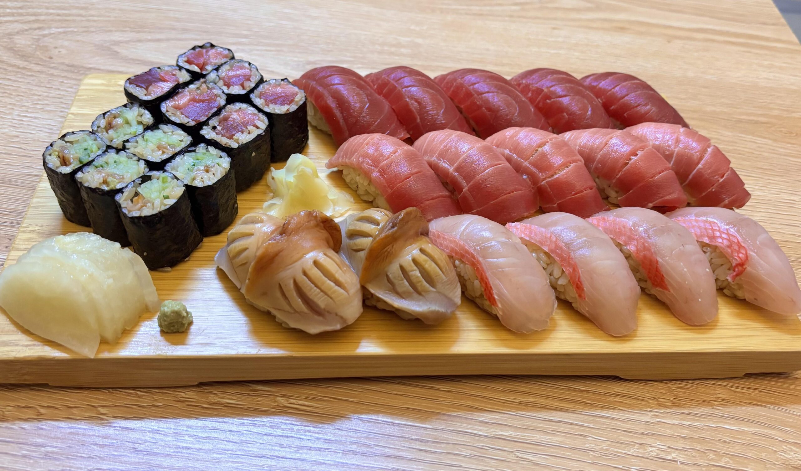 Beautifully cut rolls. Tekka and Himokyu?