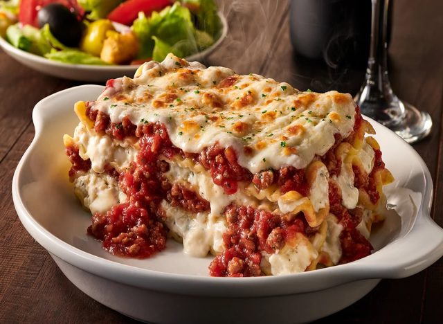 Olive Garden offers endless value on comforting classics. All entrees are a meal, as they come with your choice of endless soup or salad and breadsticks. Lasagna Classico is $18.49, Ravioli Carbonara $18.29, Spaghetti with Meat Sauce is $12.99, and Fettuccine Alfredo is $16.49.
