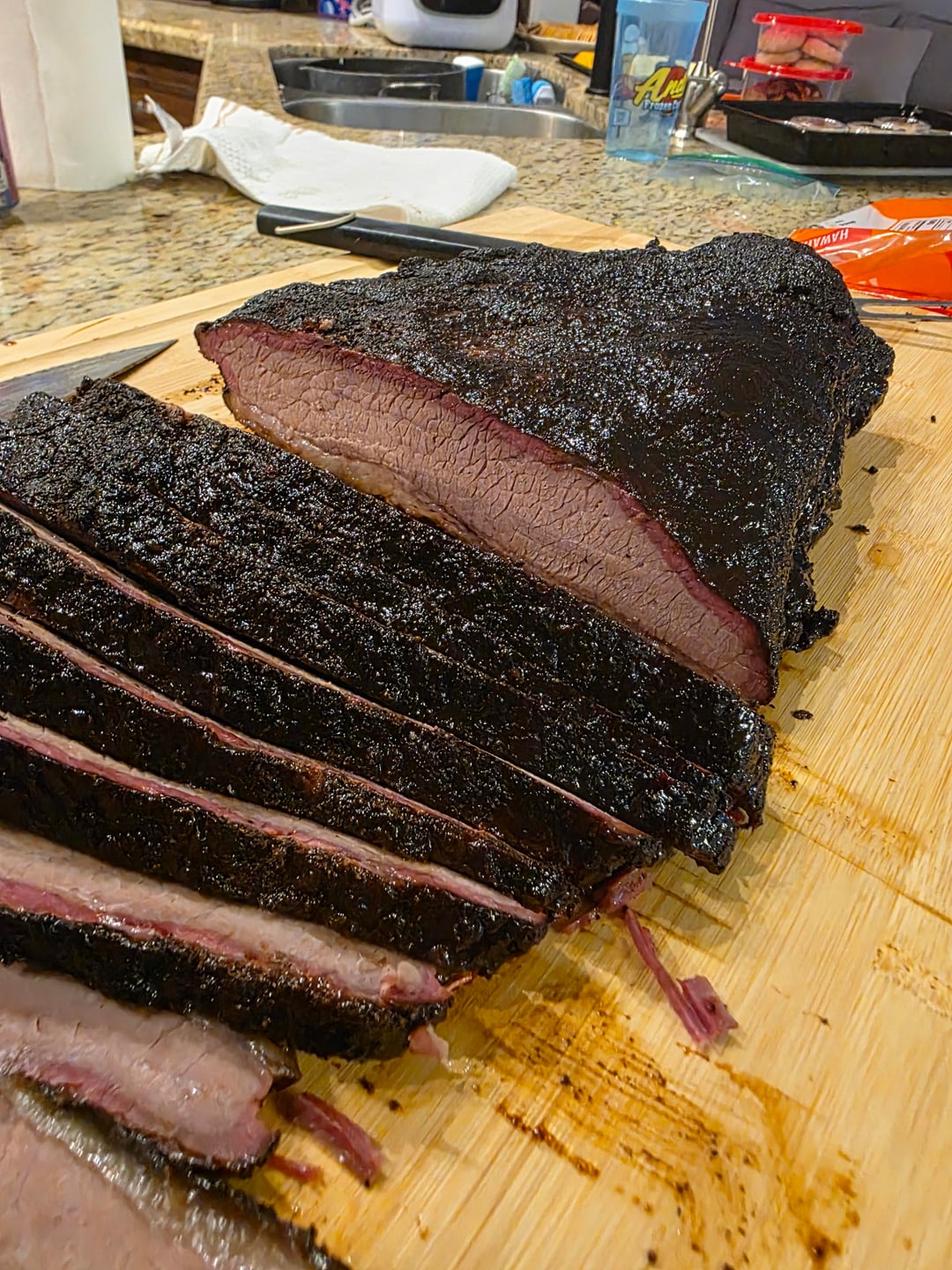 18 hours in the smoker and rested for about 2 in the cooler. I'm pretty happy with how it came out. I'm happy to hear suggestions for improvement though. I fully grasp that smoking is more art than science.