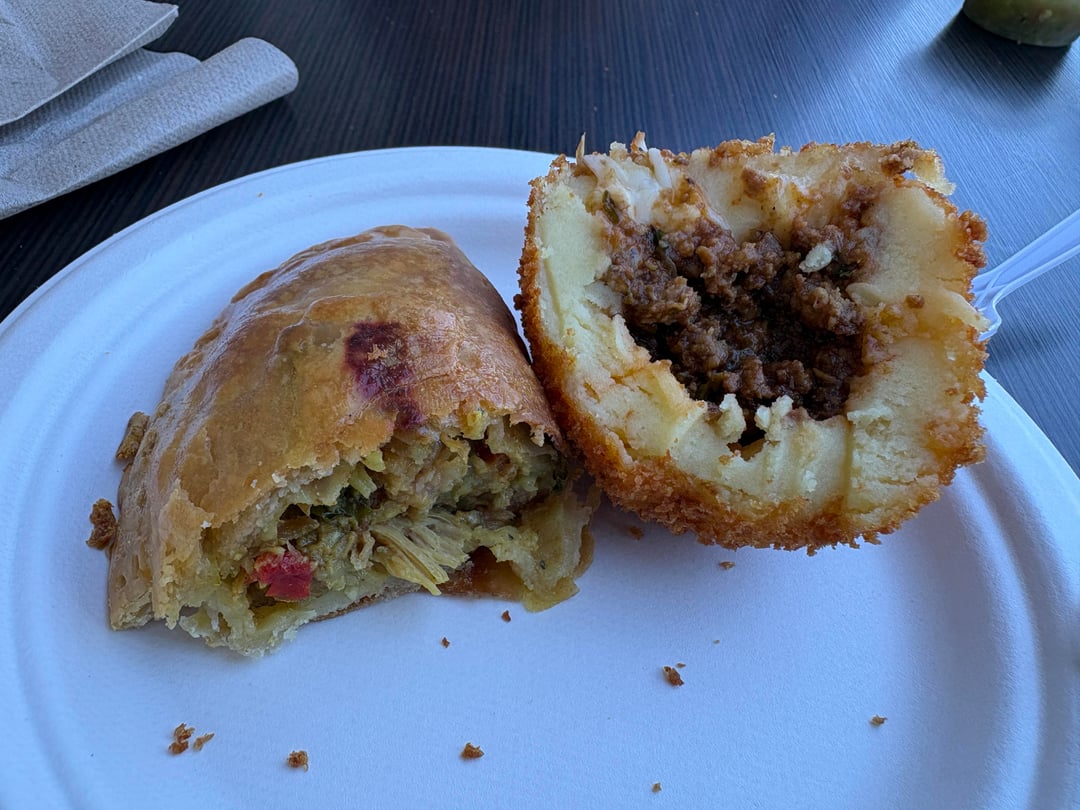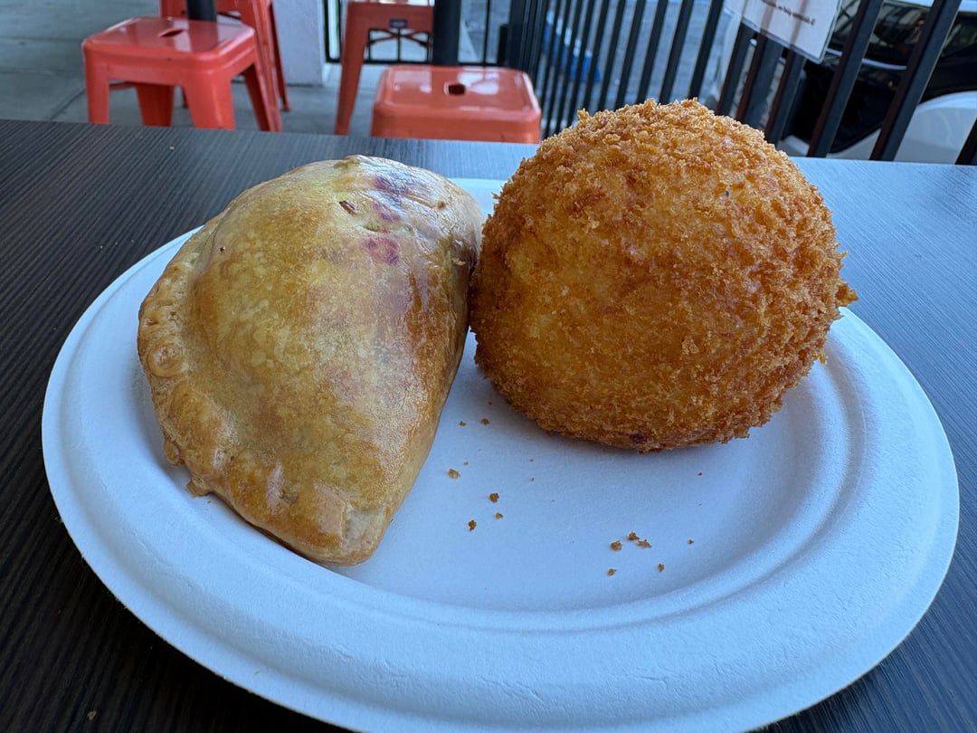 We each got a Cuban sandwich and then shared a curry chicken empanada and a beef ball.