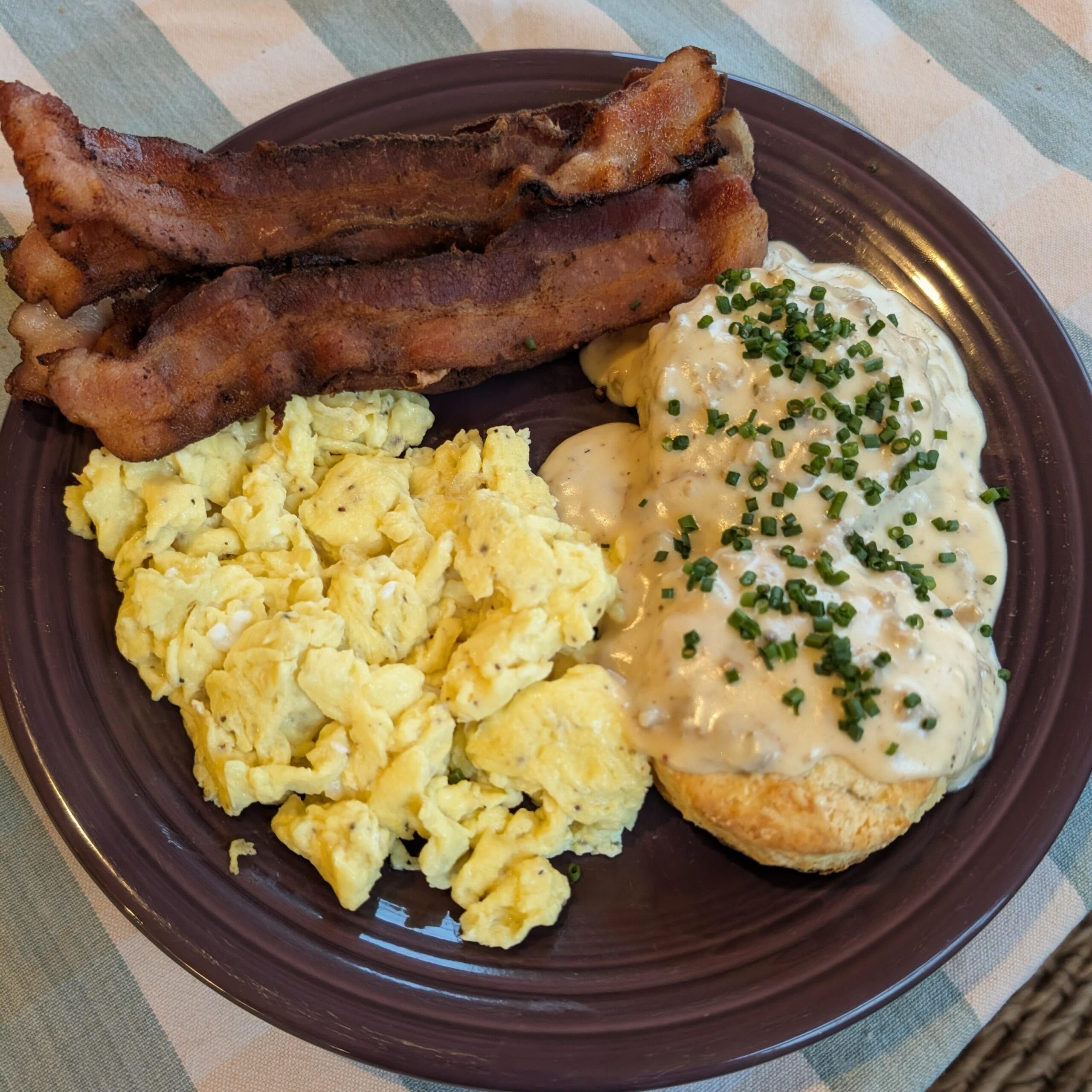 Biscuits and gravy, scrambled eggs, and bacon by ncb100 6 Comments Appropriate-Neck-585 3 weeks ago Perfect. Bacon is crispy and delicious. AnnieLes 3 weeks ago Are you hanging out with the chive guy? Those look good. (It all looks good!) Shafiqur1205 3 weeks ago Looks damn good! Official! Fuzzy_Welcome8348 3 weeks ago Looks excellent! No-Art-6765 3 weeks ago I’m not even hungry atm but that looks good! sevenoutdb 3 weeks ago GOAT