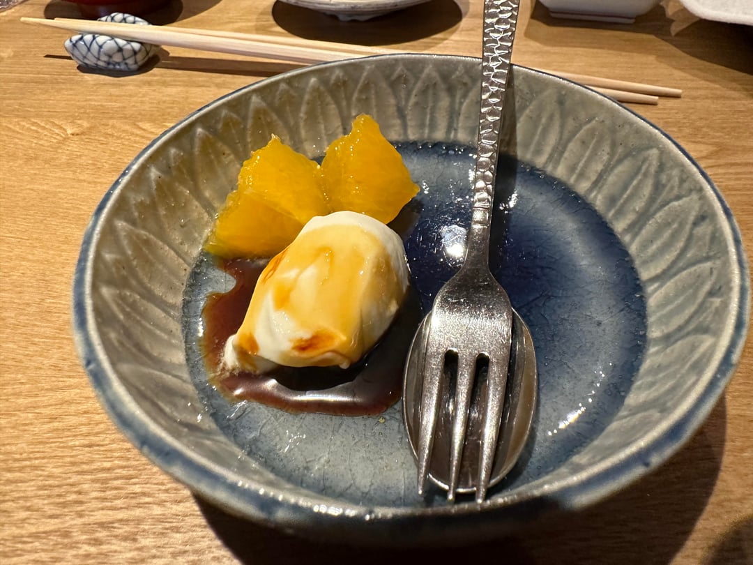 His take on sushi is modern. Some pieces are smoked, others seared (Otoro). Other pieces are seasoned aggressively with yuzu and even Japanese yellow mustard. About 1/2 the nigiri is modernized and 1/2 unadorned. Flavors are aggressive including a dessert with a pan a cotta with a deeply burnt caramel flanked by 2 of the sweetest orange segments ever grown.