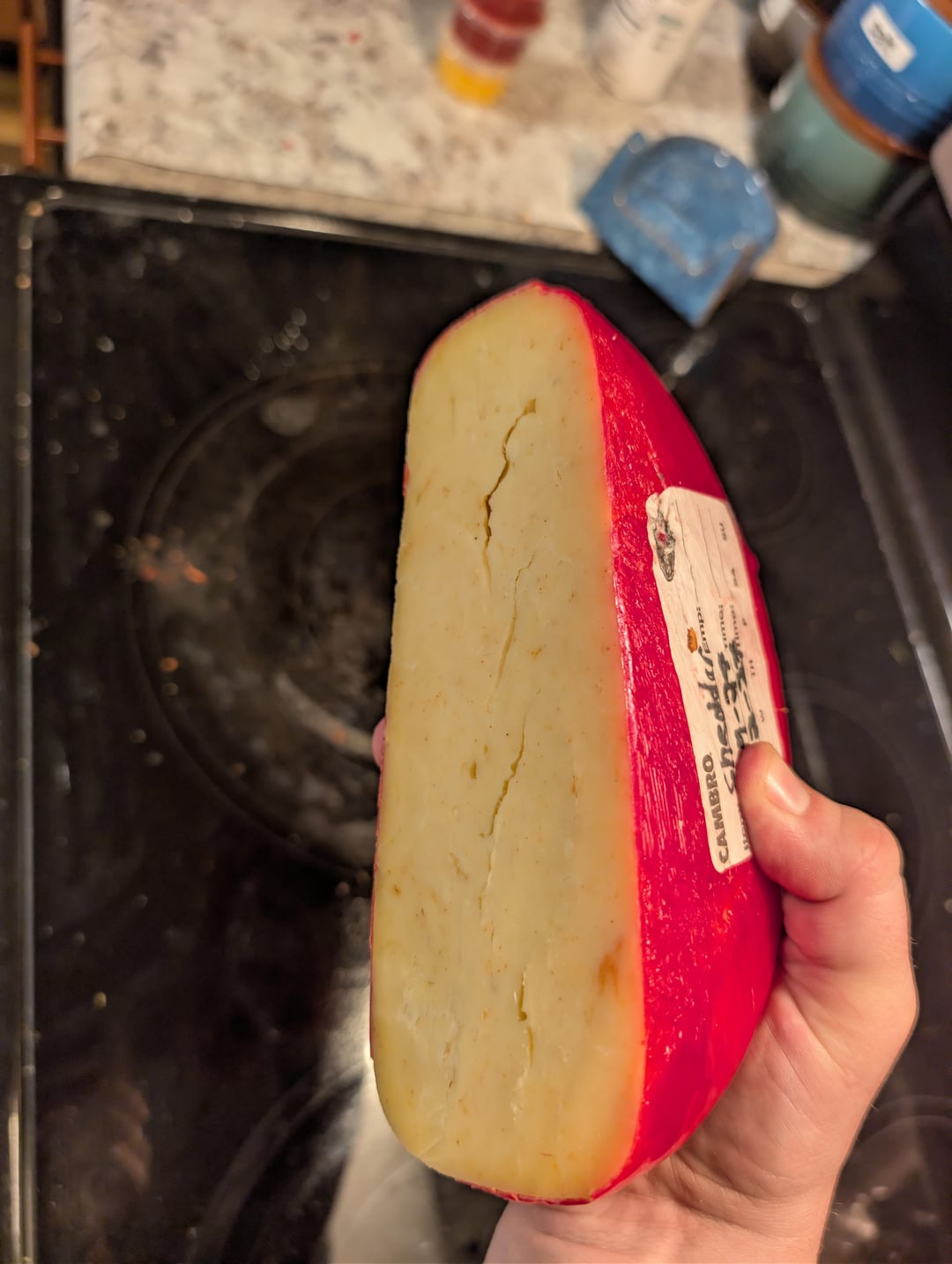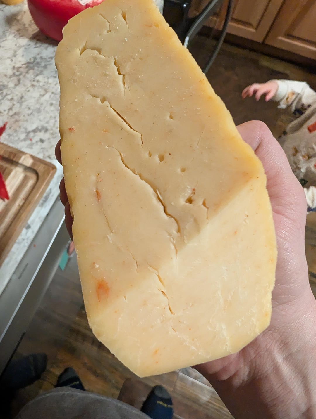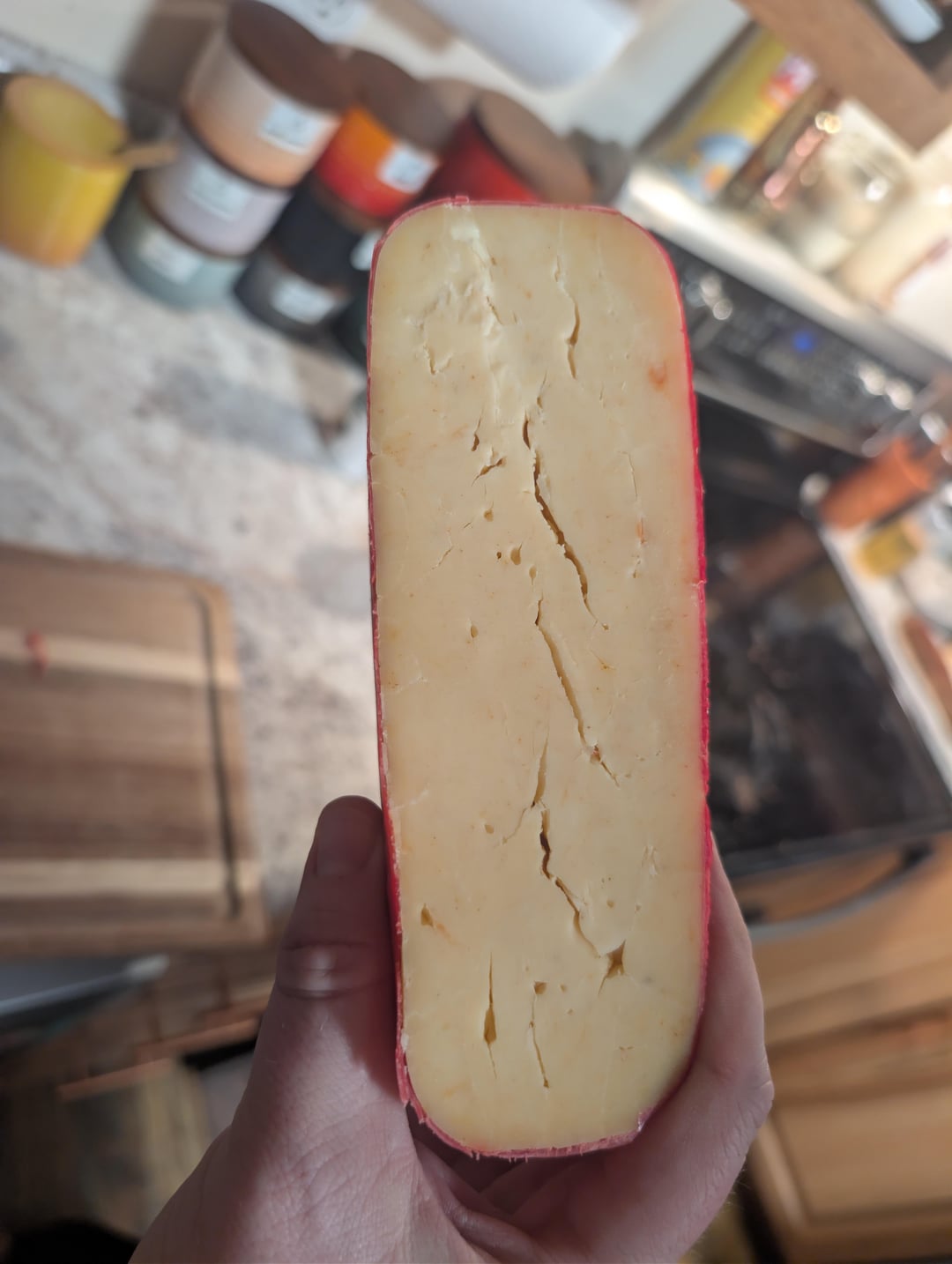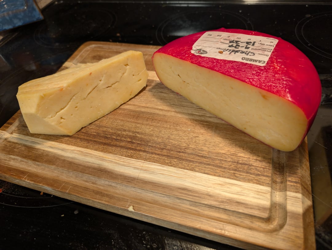 I've been aging a cheddar for 3 months in preparation for this day. I also used fresh mozzarella.