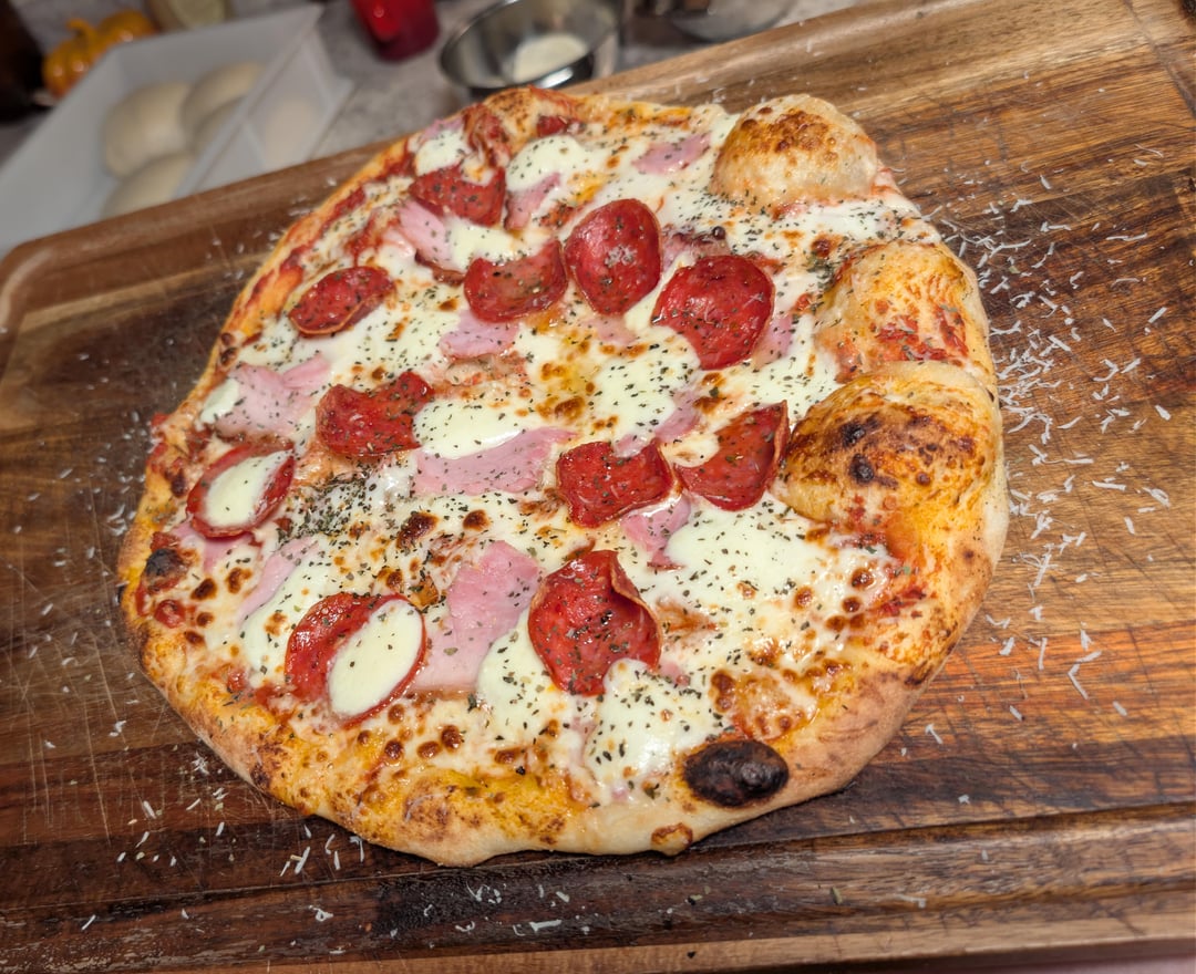 The dough was double fermented and made with Caputo 00. I make my own flower as well, but because it's whole wheat it never gets quite the same rise as the Caputo.