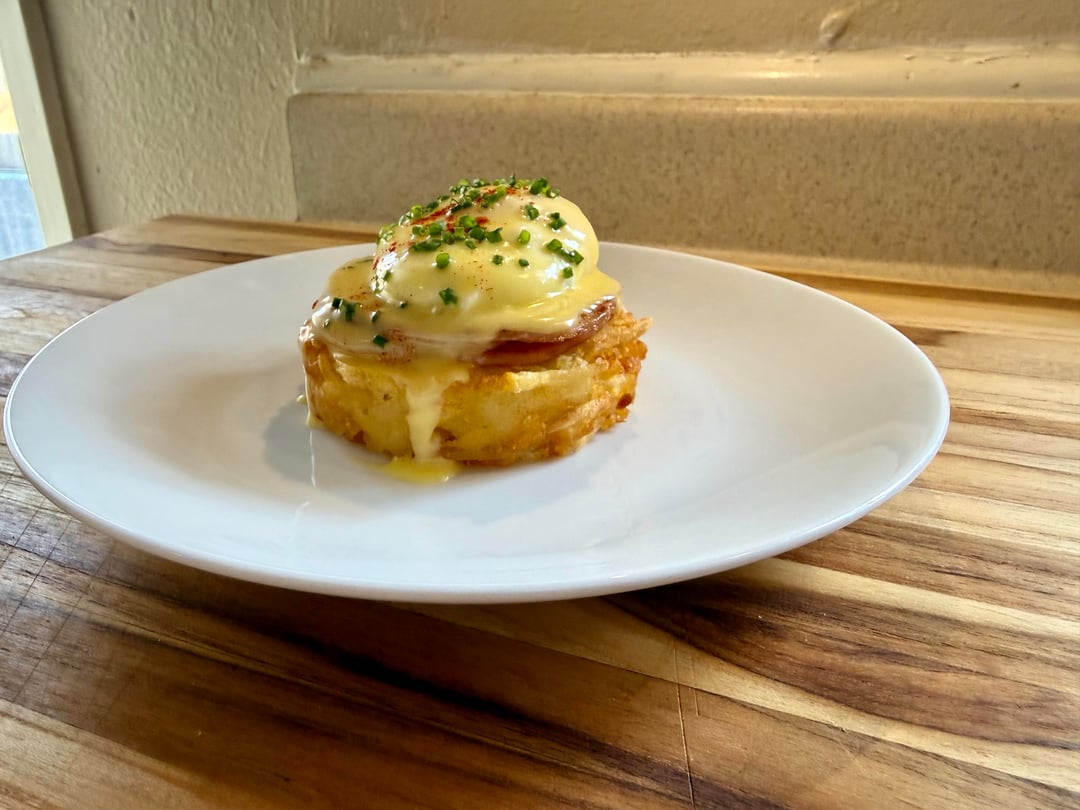 Eggs Benedict over hash browns