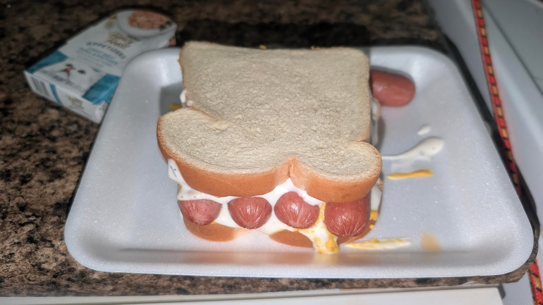 7. Love a boiled hot dog but why did you do this to your body 🙁