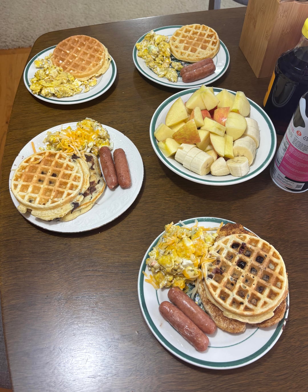 Blueberry jam, plain, cinnamon, and chocolate chip waffles and pancakes!by daisydxw 2 Comments Sea_Winter2805 3 weeks ago What a good breakfast Fuzzy_Welcome8348 3 weeks ago Looks lovely 😊