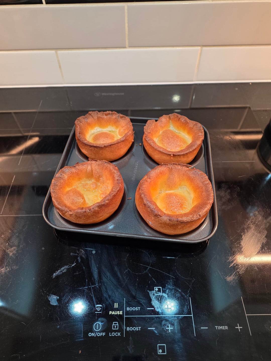New Yorkshire Pudding specific pan. I'm amazed! by Wooba99 11 Comments Red_PapaEmertius2 12 hours ago Those look picturesque. Good job TheRemedyKitchen 12 hours ago Those look perfect! I’m so jealous grilledcheese2332 12 hours ago My Welsh grandma would be very proud. hitheringthithering 11 hours ago Would you please describe your process? allmykitlets 11 hours ago I’ve never had Yorkshire pudding, but feel I should. MrsBlabbings 11 hours ago Holy crap, those are beautimious! Flying-Citrus356 11 hours ago Magnificent! lala4now 11 hours ago I thought I knew what the word “pudding” meant, and now I’m not so sure. cactus_cat 11 hours ago Look much better than mine did this year. bannakafalata 10 hours ago Thought this was pop overs, but just realized the difference is Yorkshire uses beef fat useless_modern_god 7 hours ago These look sensational OP 👍
