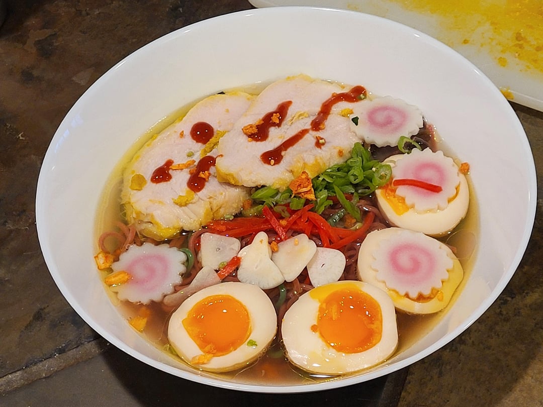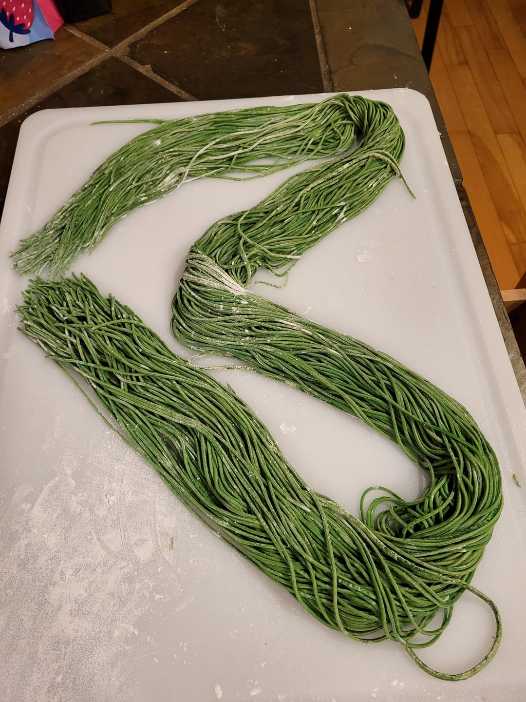 Was a lot of fun making the noodles! I had to do some guesswork with the coloring but happy with the results. Can't say I noticed any flavoring of the noodles but I was thinking an idea to puree dried chili's simmered in water, strain and use that water for the noodles.