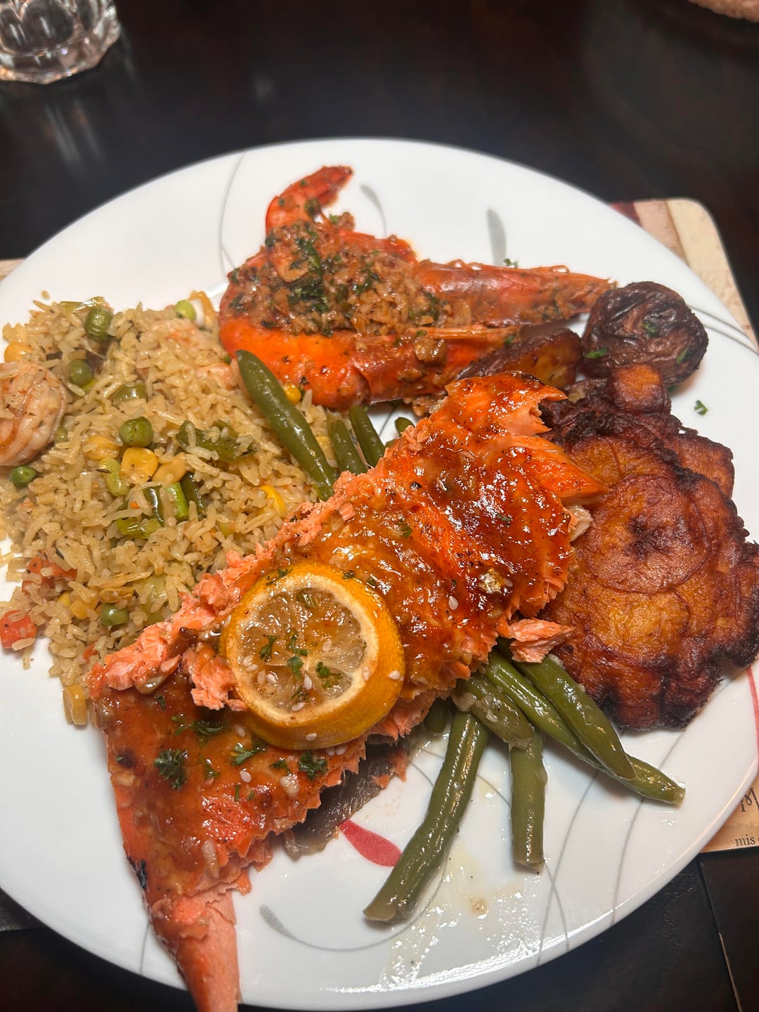 Christmas dinner: Honey mustard salmon, Nigerian Fried Rice, roasted potatoes, sautéed garlic green beans, spicy garlic prawns and doubled fried plantains🎄😋by esther_ludd58 8 Comments PollinatorEnabler 3 months ago Whoa…that looks amazing! 😍 Judgmental-Dogface 3 months ago Looks delicious! BeefInBlackBeanSauce 3 months ago Yuuuum CormoranNeoTropical 3 months ago Wow this looks so good! dragonfliesloveme 3 months ago good lord that looks good svolm 3 months ago Looks amazing!! Merry xmas! RedJorgAncrath 3 months ago Got details on that rice? I make something similar but that looks delicious in ways mine doesn’t. Fuzzy_Welcome8348 3 months ago Looks excellent! Well done!