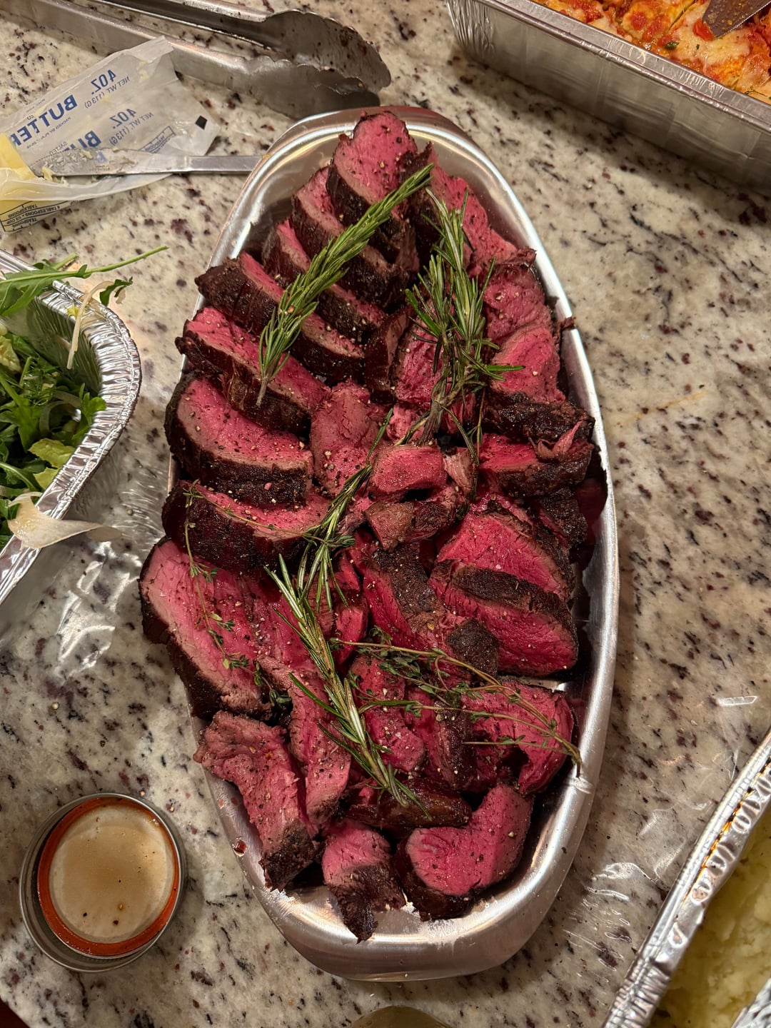 4.8lb usda prime. overnight dry brine. oven at 250 for about 90 min, sear on the cast iron weber griddle to finish. as someone who is notorious for overcooking everything, my company was impressed. served with mashed potatoes, spicy maple carrots, shaved fennel salad, and eggplant parm.