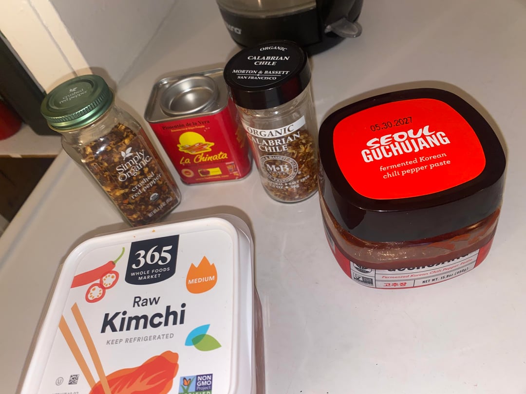 I made a very spicy soup for my bf to help his congestion- Could you give me tips how to make it even spicier? I fried the dried chilli peppers with garlic. Second pic is spices used (he doesn’t have any more options)