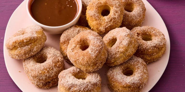 Bobbing for apples? How about digging into apple pancakes instead? This stack is chock-full of the seasonal fruit, warm cinnamon spice, and topped with a generous dollop of whipped cream for good measure.